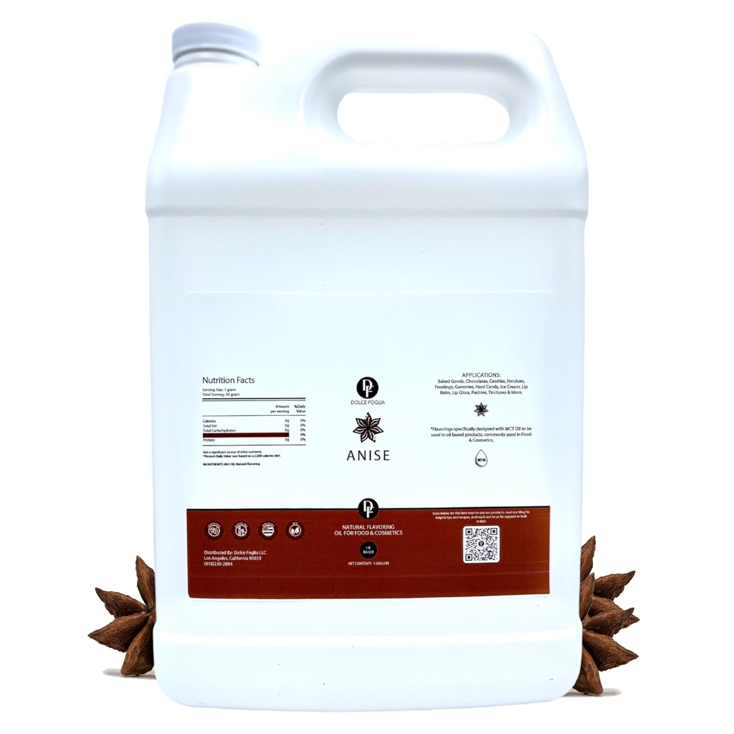Dolce Flav Natural Anise Extract – 1 Gallon Oil-Soluble Kosher, Sugar-Free, Concentrated Licorice Anise Flavoring for Baking, Cookies & Liqueurs