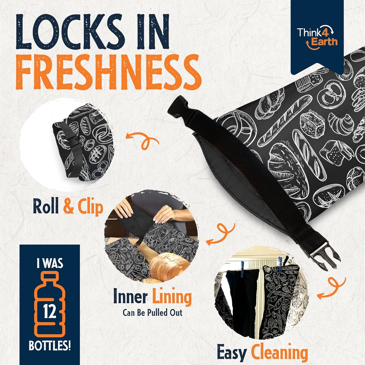 - ECO-FRIENDLY & REUSABLE BREAD BAGS: Opt for our reusable bread bags made from recycled plastic bottles as a planet-conscious alternative to disposable plastics. Contribute to a greener future while keeping your homemade or professional bakery products fresh with Think4Earth's sustainable food storage solutions. Crafted from 12 BPA-free, food-safe recycled plastic bottles, these vegan-friendly, 100% recyclable bags make a positive impact.