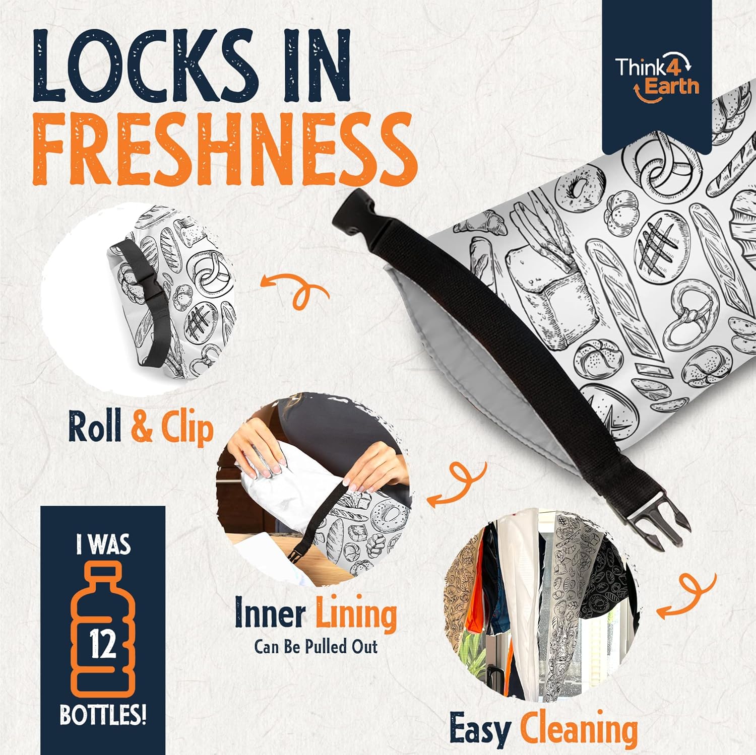 - ECO-FRIENDLY & REUSABLE BREAD BAGS: Opt for our reusable bread bags made from recycled plastic bottles as a planet-conscious alternative to disposable plastics. Contribute to a greener future while keeping your homemade or professional bakery products fresh with Think4Earth's sustainable food storage solutions. Crafted from 12 BPA-free, food-safe recycled plastic bottles, these vegan-friendly, 100% recyclable bags make a positive impact.