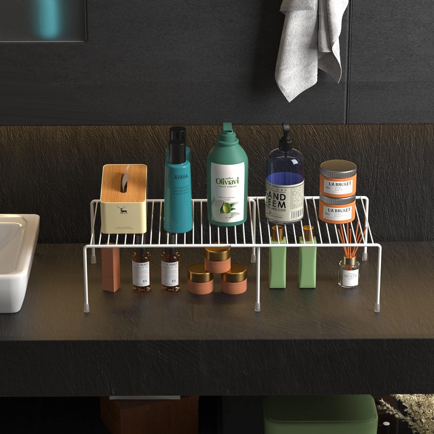 - FUNCTIONAL STORAGE:Perfect shelf to keep everything organized in cabinet, pantry, cupboard, closet, drawer or counter top in kitchen, bathroom, bedroom and under the sink. With the mesh design board, it can be a drying rack for dishes, bottles, plates.
