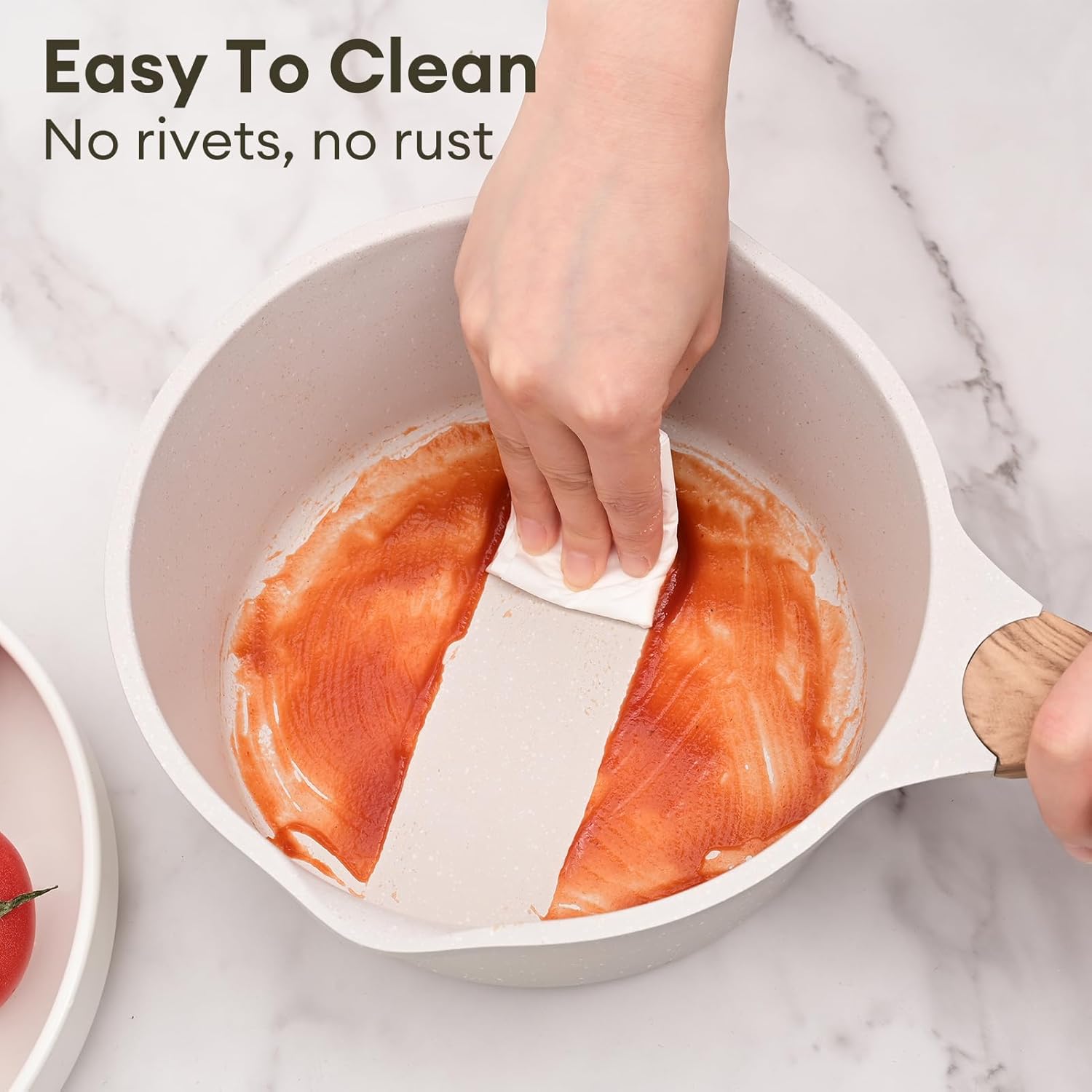 JEETEE 1.5 Quart Saucepan with Lid Nonstick Stone Coating Sauce Pan Milk Pan for Cooking Inudction Pot(Beige)