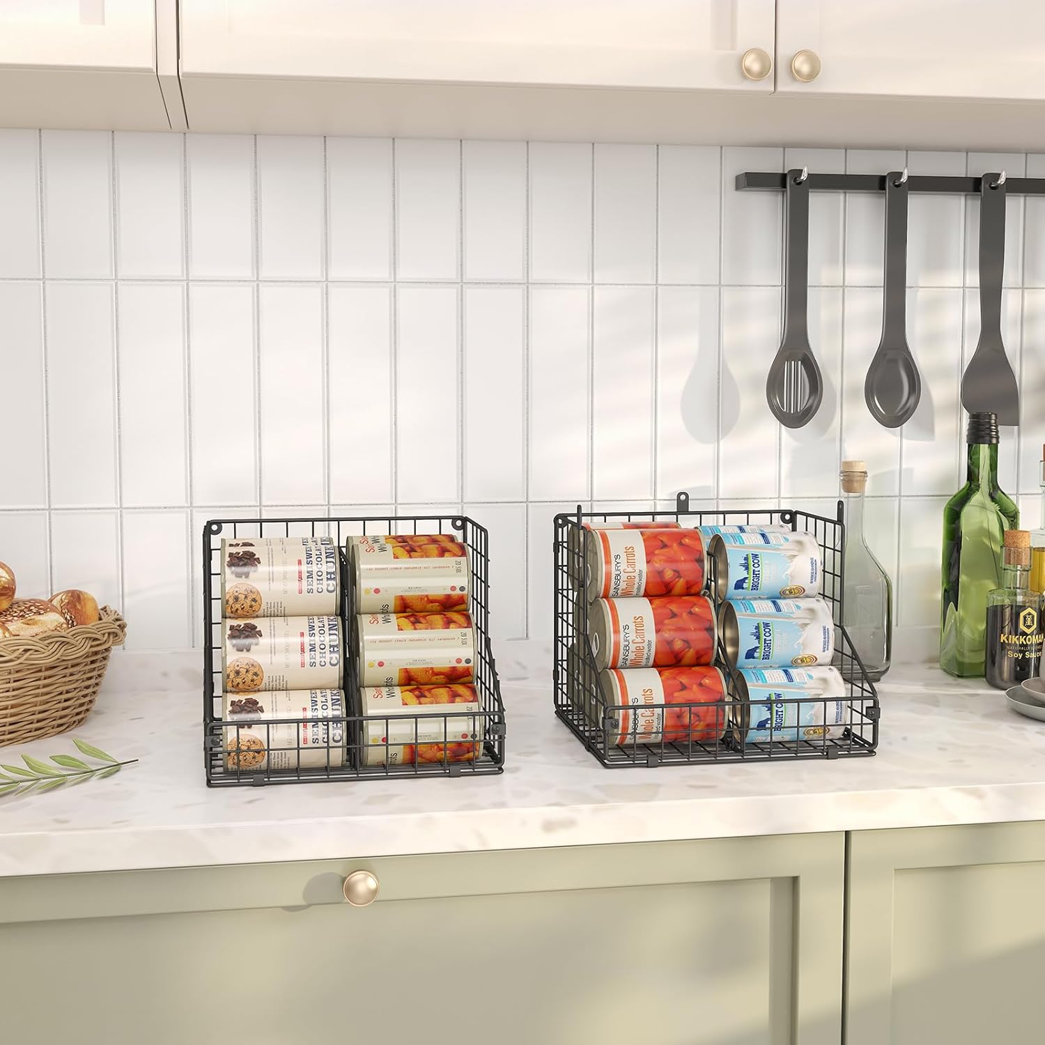 - 【STURDY AND DURABLE】The can storage material is strong iron, metal wire baskets is sturdy and durable.Can holders for pantry can withstand the heavy cans and not easy to bend and collapse.