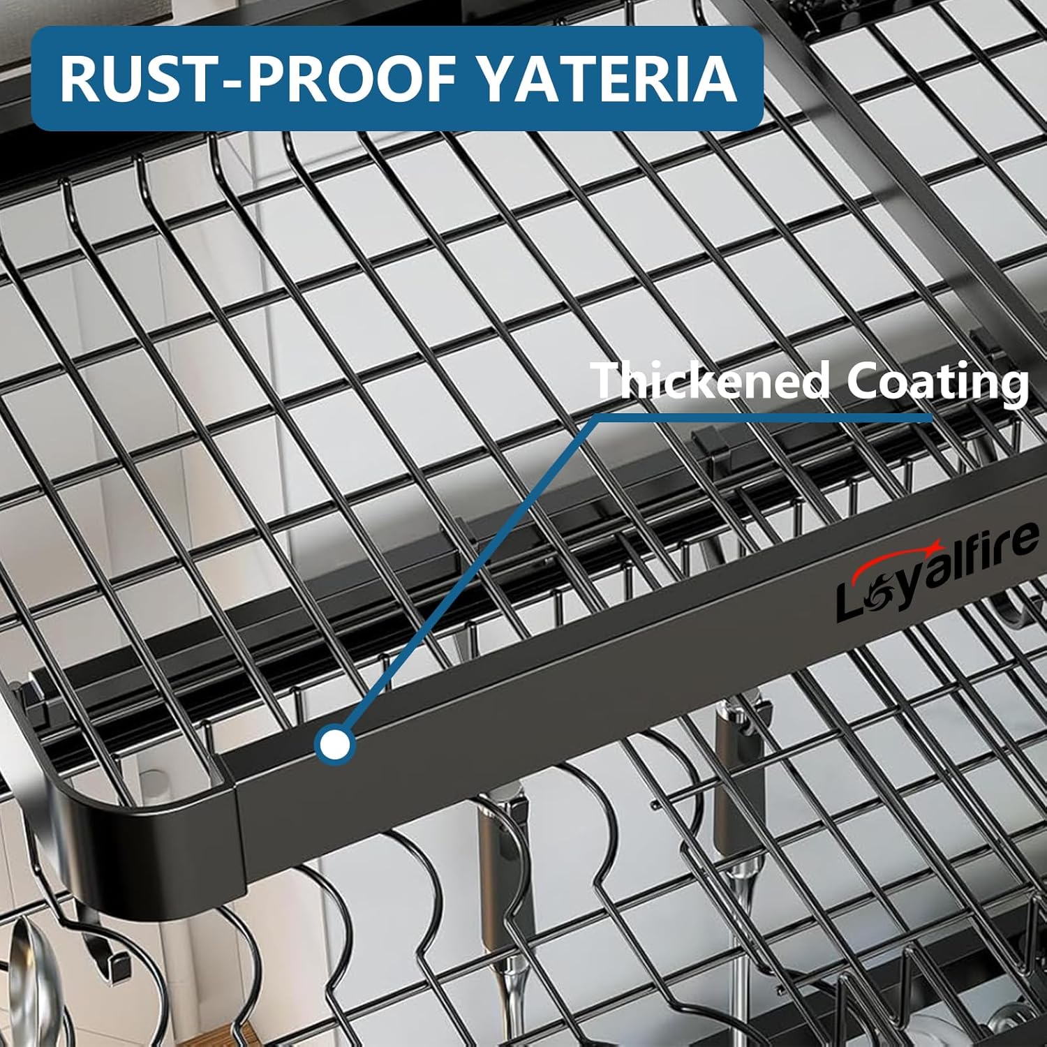 - FIND THE RIGHT DISH RACK FOR YOU: please carefully measure 3 numerical values: The width of your kitchen sink, the height of the faucet and the height between the cabinet bottom to the countertop before buying.Loyalfire provide lifetime after-sales service for this kitchen rack.