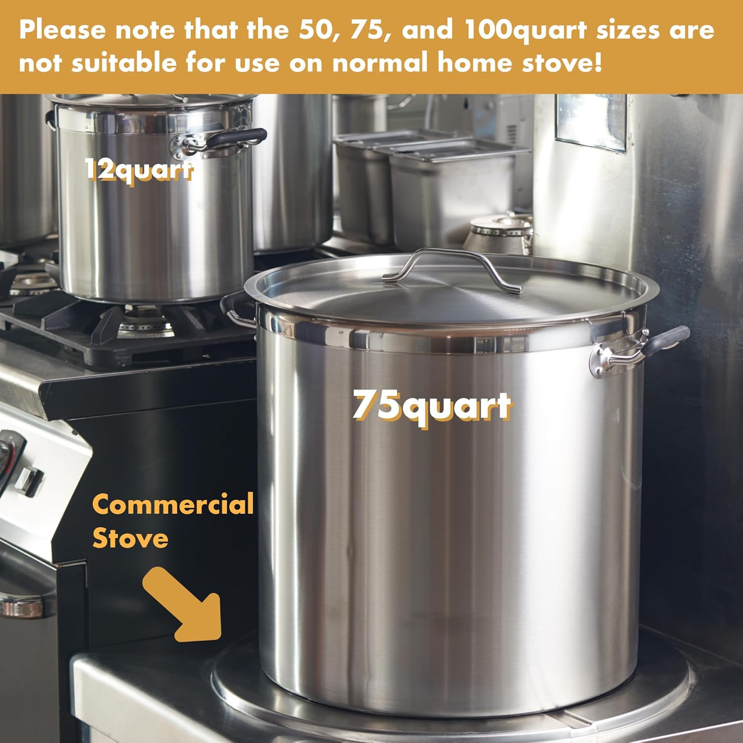 - 👍Versatile Size Options: Choose from our range of sizes, including 12qt, 20qt, 32qt, 50qt, 75qt, and 100qt, to suit your cooking needs. Whether you're preparing a family meal or catering for a large event, this stock pot provides ample capacity for any occasion.
