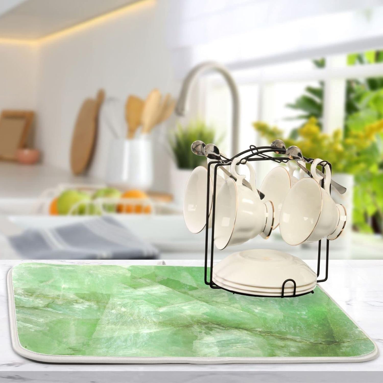 Super Absorbent Dish Drying Mat, Microfiber Fast-Drying Dish Mat, 16" x 18", Kitchen Dish Drying Pad, Green Jade Stone Marble