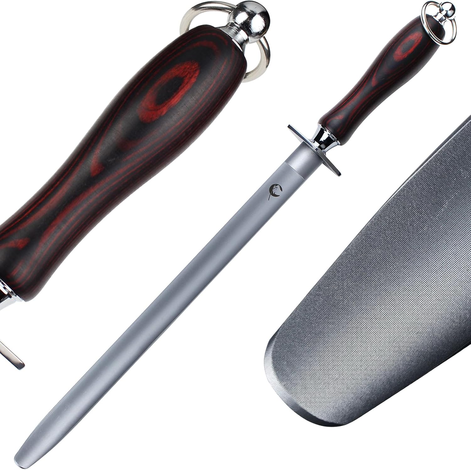 - [Excellent High Hardness Carbon Alloy Steel]: HSS high hardness carbon alloy steel endows the sharpening rod with unparalleled hardness, HRC67, which allows you to efficiently deal with any of your knives in your kitchen;