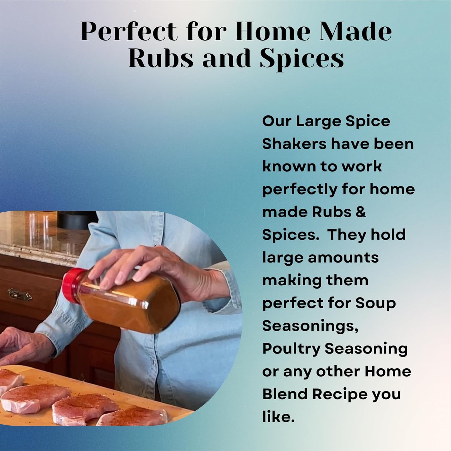 - VERSATILE HOME ESSENTIALS: Glass Spice Shaker with Lids are modern, minimalist home must-haves. Our Large Spice Jars can be used for Parmesan Cheese, Sugar Shaker Dispenser, spice Container, and more.