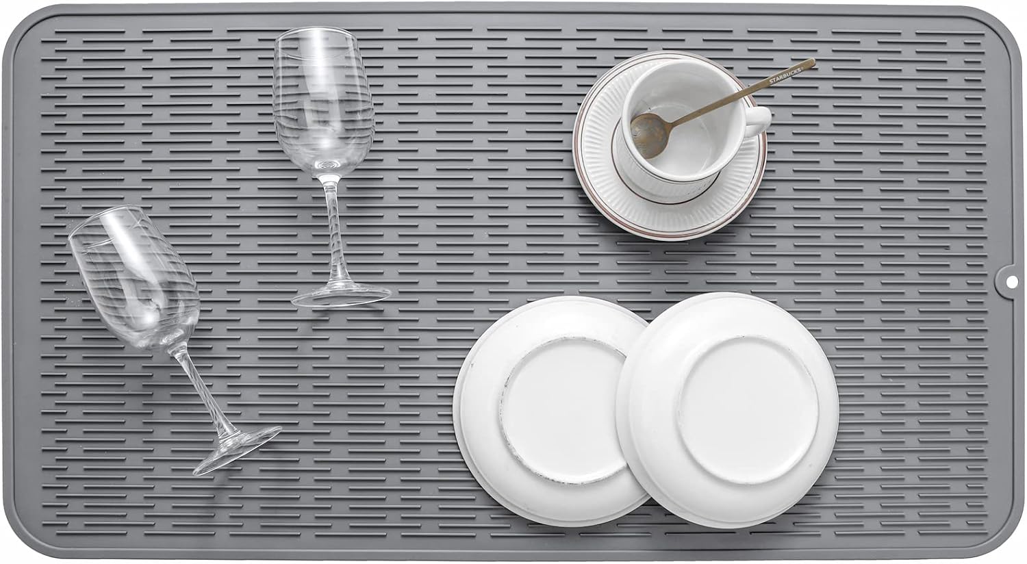 Silicone Dish Drying Mat for Multiple Usage,Easy clean,Eco-friendly,Heat-resistant Silicone Mat for Kitchen Counter or Sink,Refrigerator or Drawer Liner Grey 4XL 32 inches x 18 inches