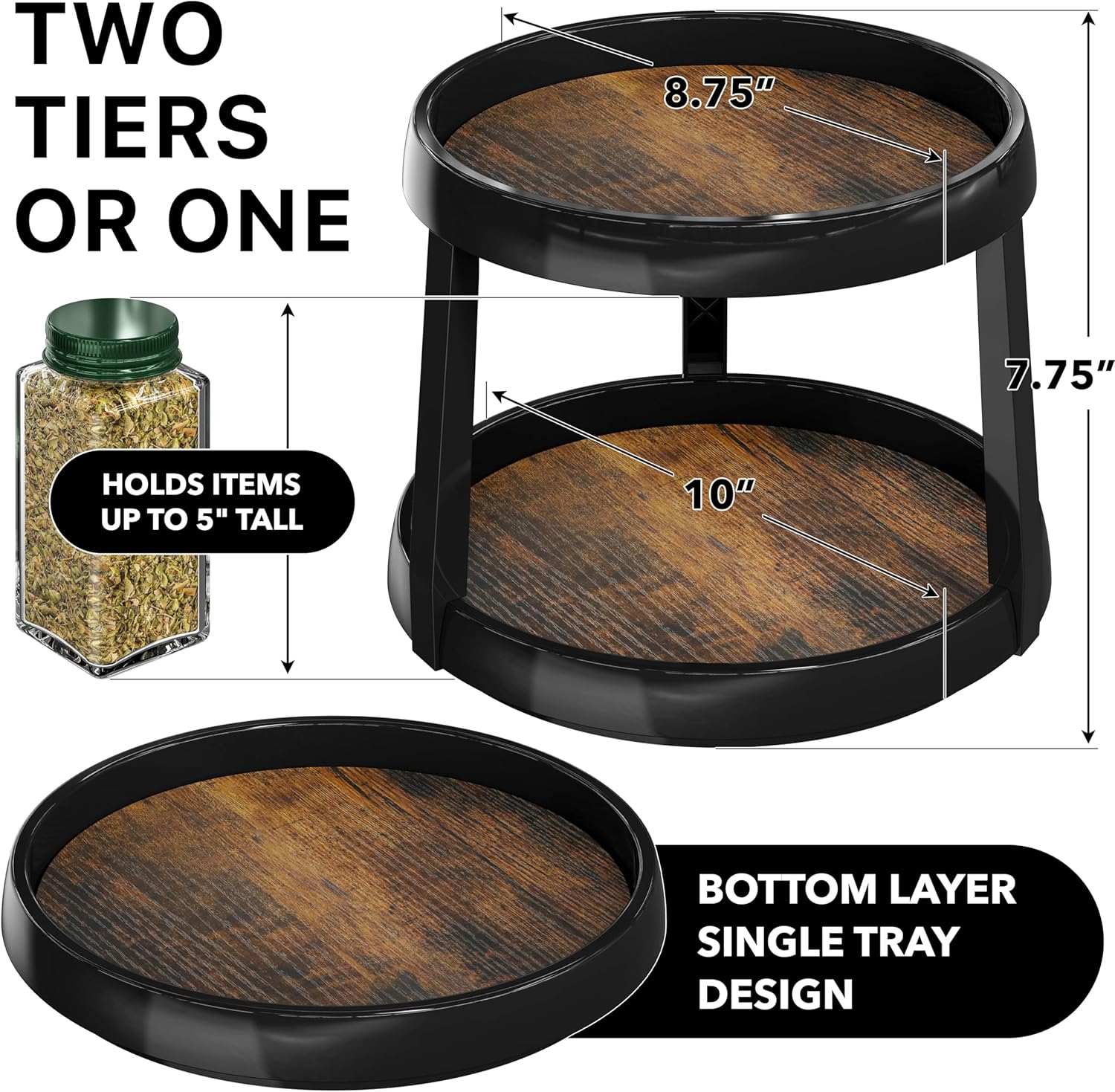 - 2-Tier Rotating Turntable: Dual-layer design maximizes vertical space, perfect for tall cabinets or countertops; use as 2 tiers or as a single to fit your needs