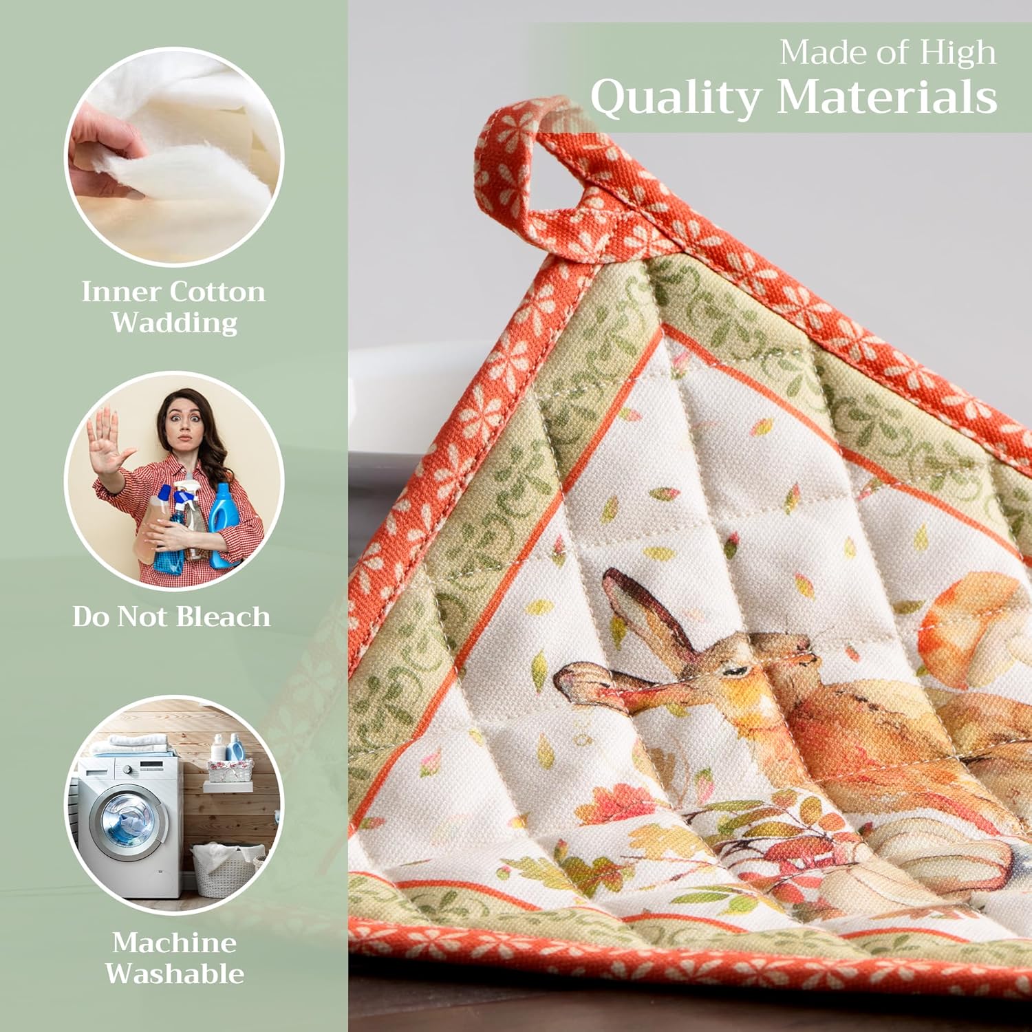 - 100% Quilted cotton: Made from premium quilted cotton, our pot holder ensures safe handling of hot pans or dishes. The soft, durable build provides excellent heat resistance and grip—perfect for everyday cooking and baking needs