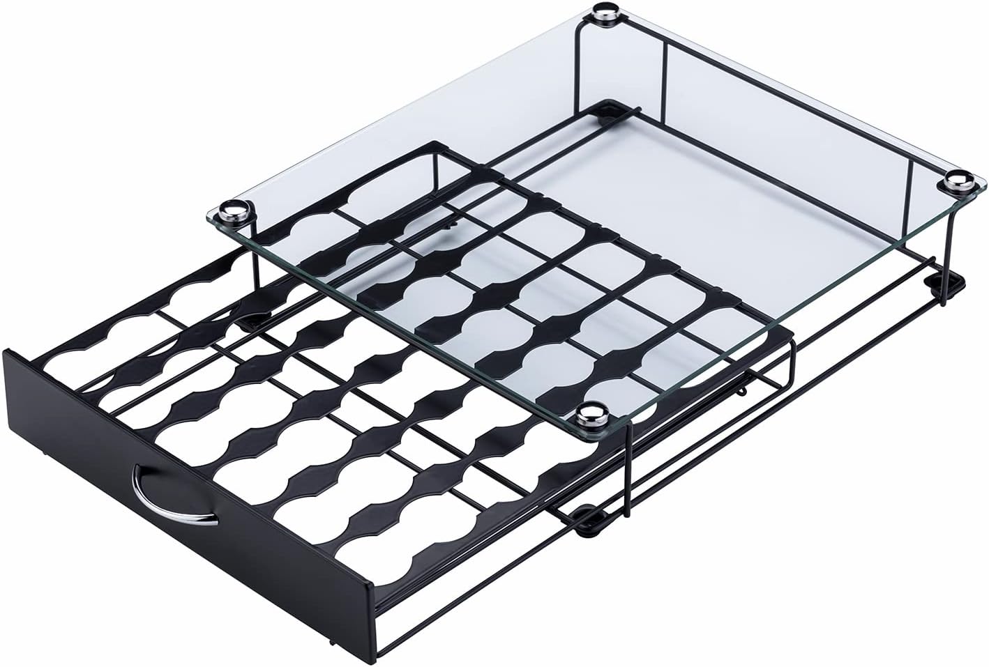- 【Sturdy Frame】coffee pods drawer is made from solid metal with the environmental spraying in black and the top of the glass can support the weight of a coffee machine that won’t bend or sink in the middle. The feet at the bottom with the EVA rubber design allows for maximum ground contact for slip resistance