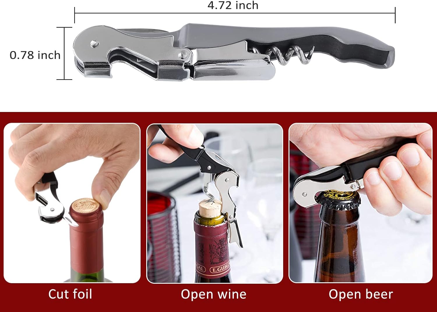 - 【Elegant appearance】 This wine key is mainly made of high-quality stainless steel. Wine corkscrew has a gray appearance, fine workmanship, sturdy structure, and is very durable. Wine opener set can serve you for a long time and improve your quality of life.