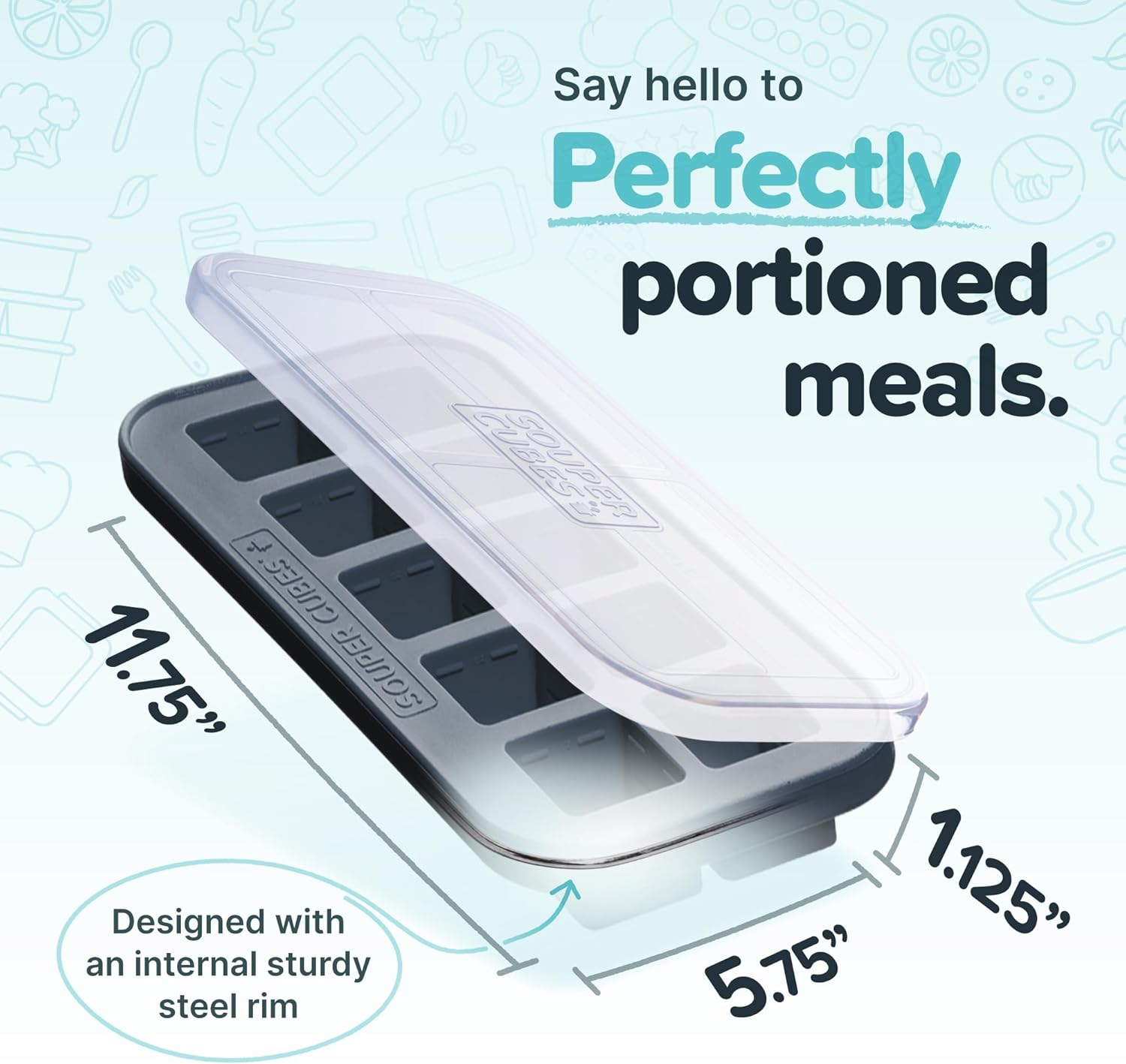 - MEAL PREP: Spend less time thinking about what you're going to eat and more time enjoying it. Our silicone freezer tray with lid is designed to make meal prep a breeze. The tray is made from 100% pure platinum food-grade silicone with a steel-reinforced top and a convenient lid.