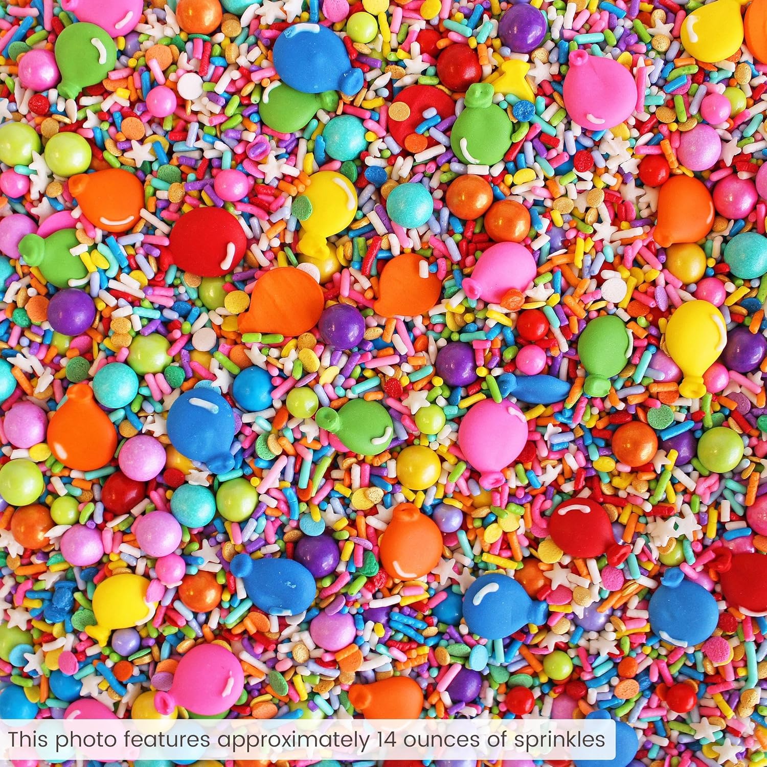 - Elevate your desserts with the colorful and delicious Birthday Party Sprinkle Mix, featuring a blend of rainbow sprinkles and hand-piped royal icing balloons in vibrant shades of red, purple, orange, pink, light blue, yellow, and lime green sprinkles. Perfect for any occasion, this mix adds a pop of fun and flavor to cakes, cupcakes, cookies, and more