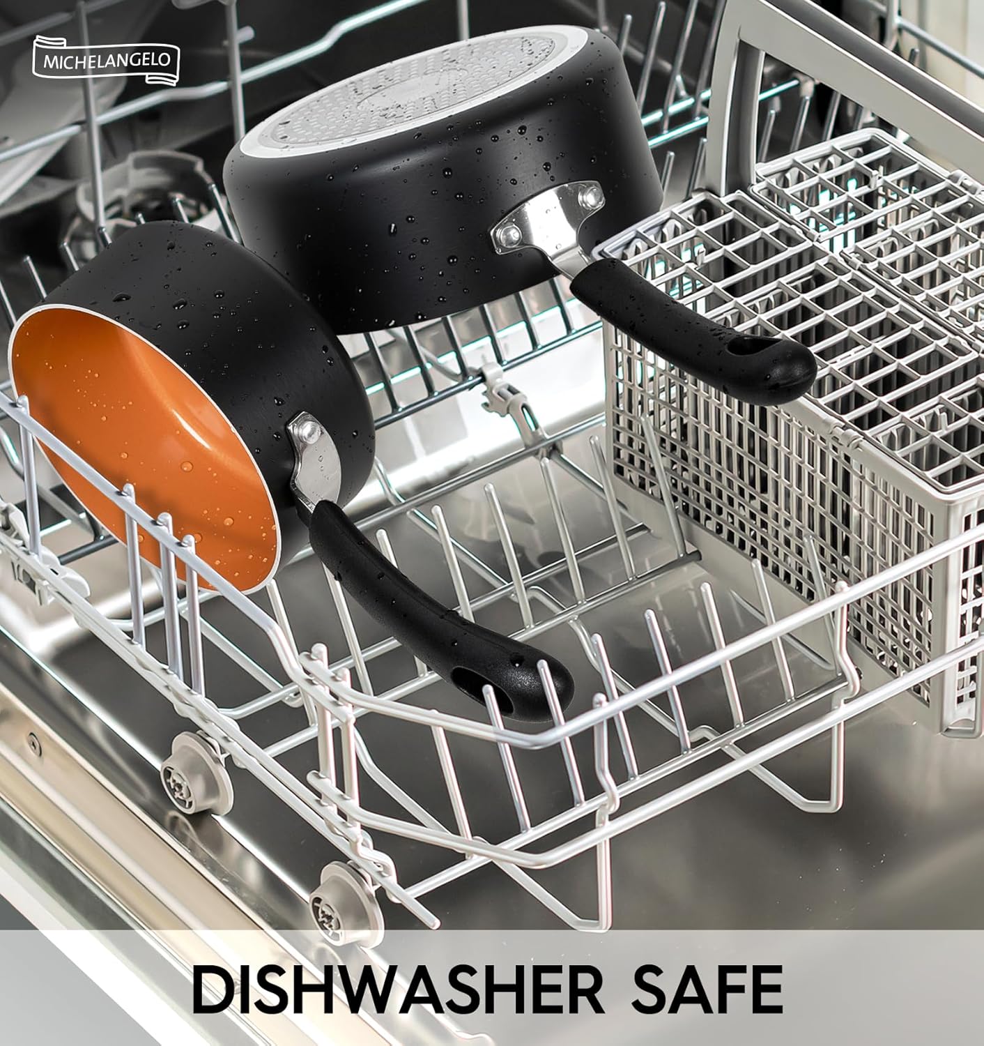 MICHELANGELO Nonstick Sauce Pan with Lid 1QT, 2QT & 3QT, Ceramic Saucepan Set, Copper Sauce pans, Non-Toxic Saucepan, Multipurpose Cooking Pots Set For Home Kitchen, Compatible induction