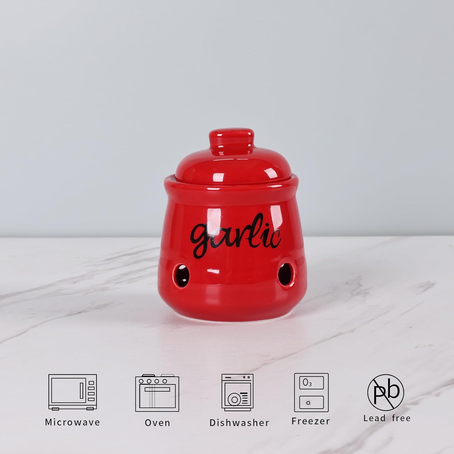 - A classic style garlic containers to add a decorative touch to their counter, stovetop, or farmhouse decor.It is very suitable for restaurants, families, coffee shops and other occasions