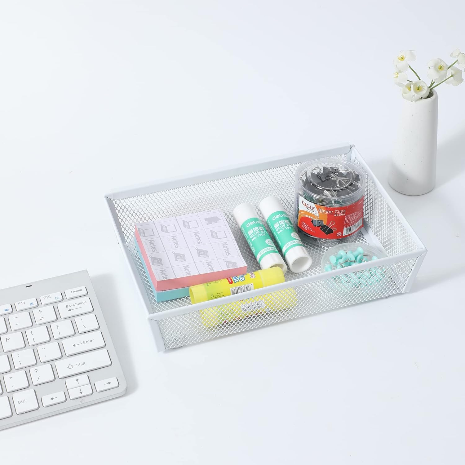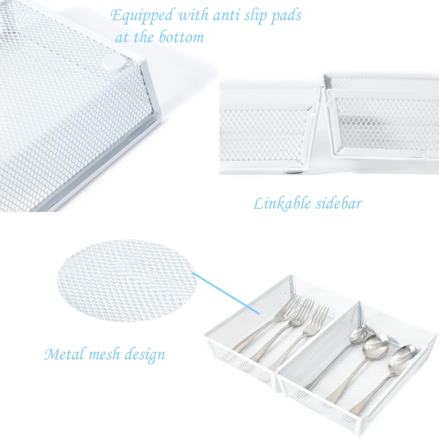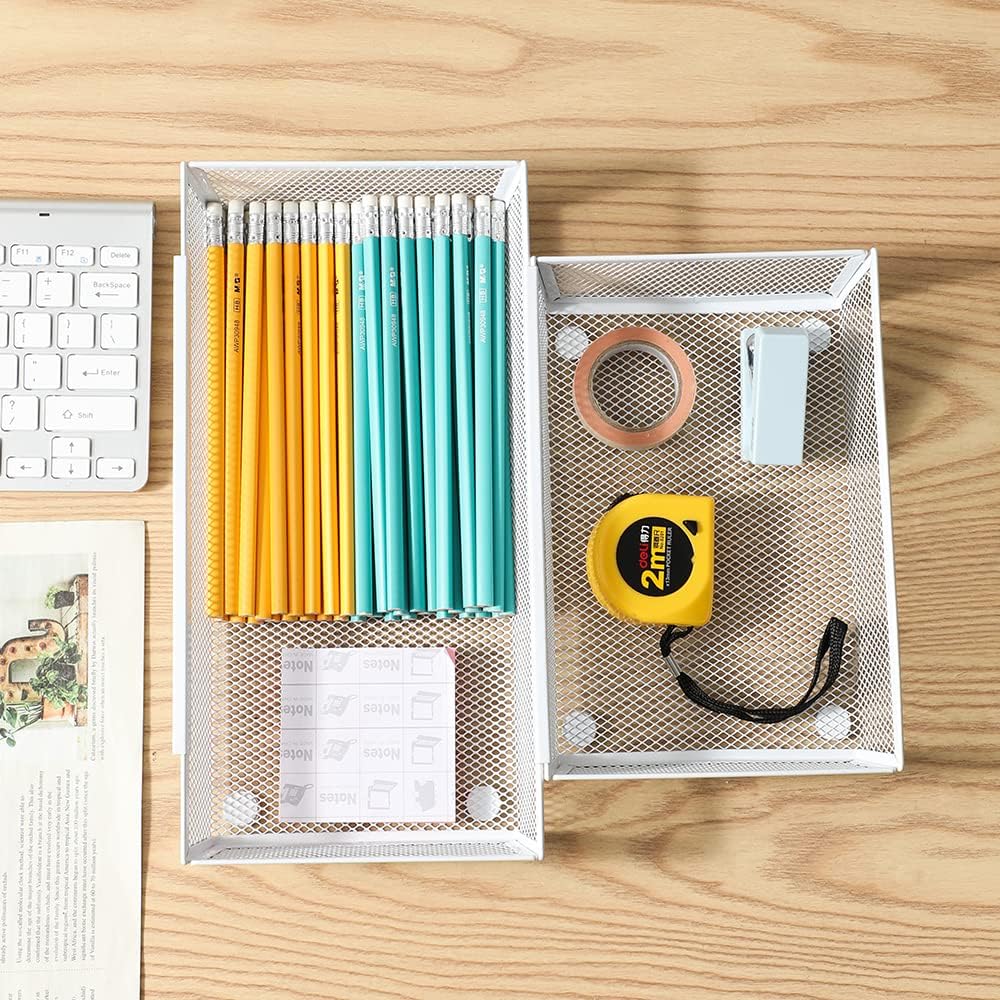 Mesh Tray Kitchen Drawer Utensil Cutlery Tray Office Supplies with Inter-locking Arm Drawer Dividers Organizer for Silverware, Flatware, Home,Office, School,Bedroom(9"X6"4pack) White