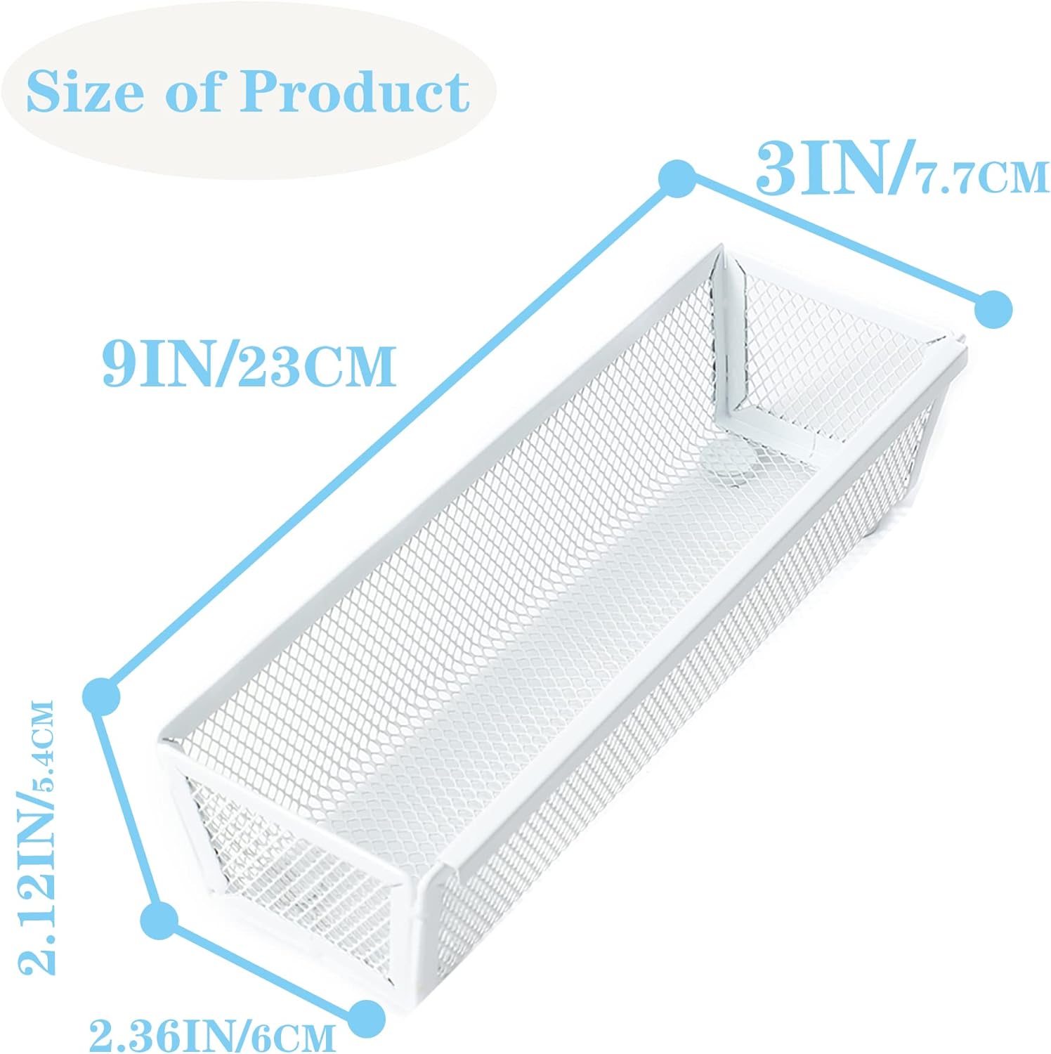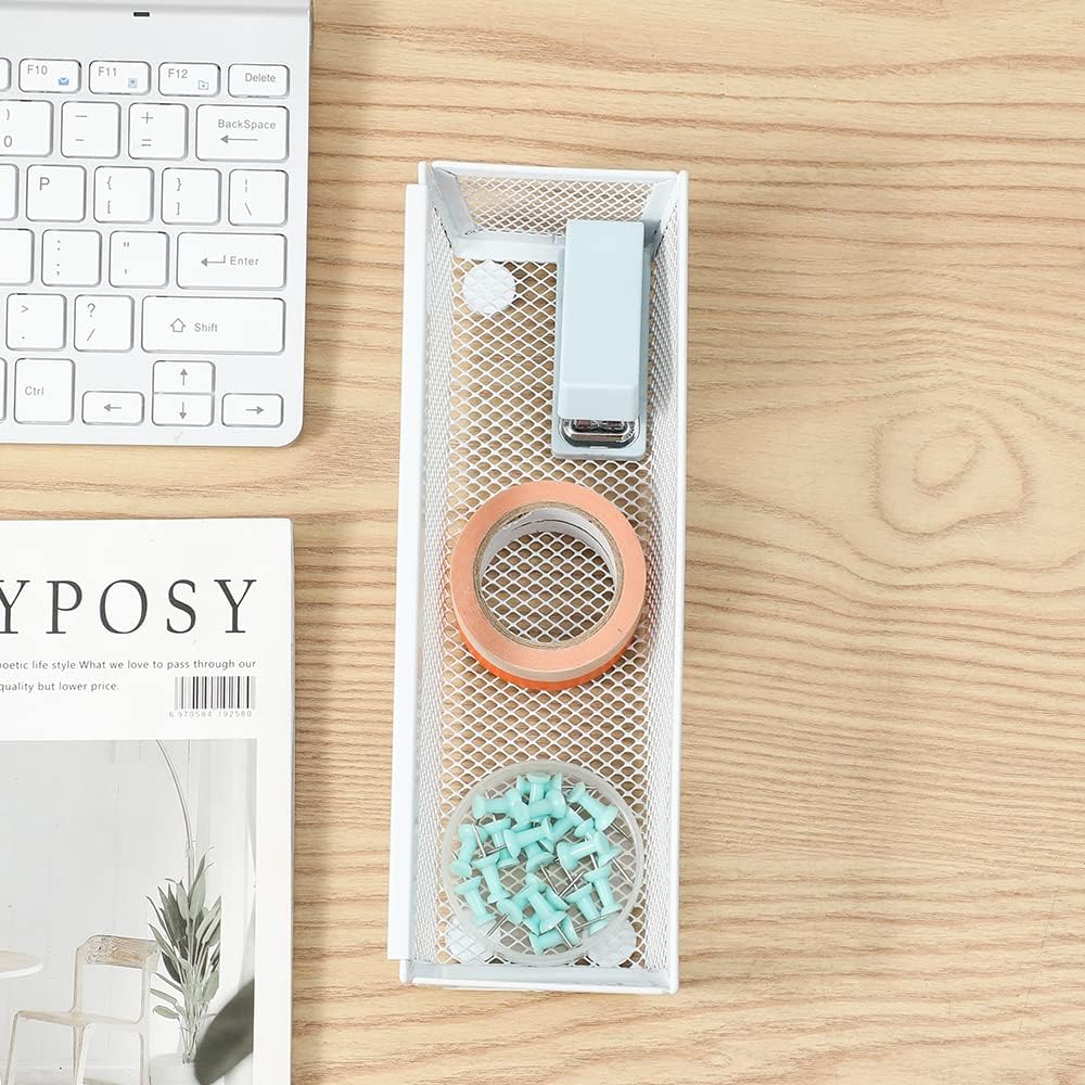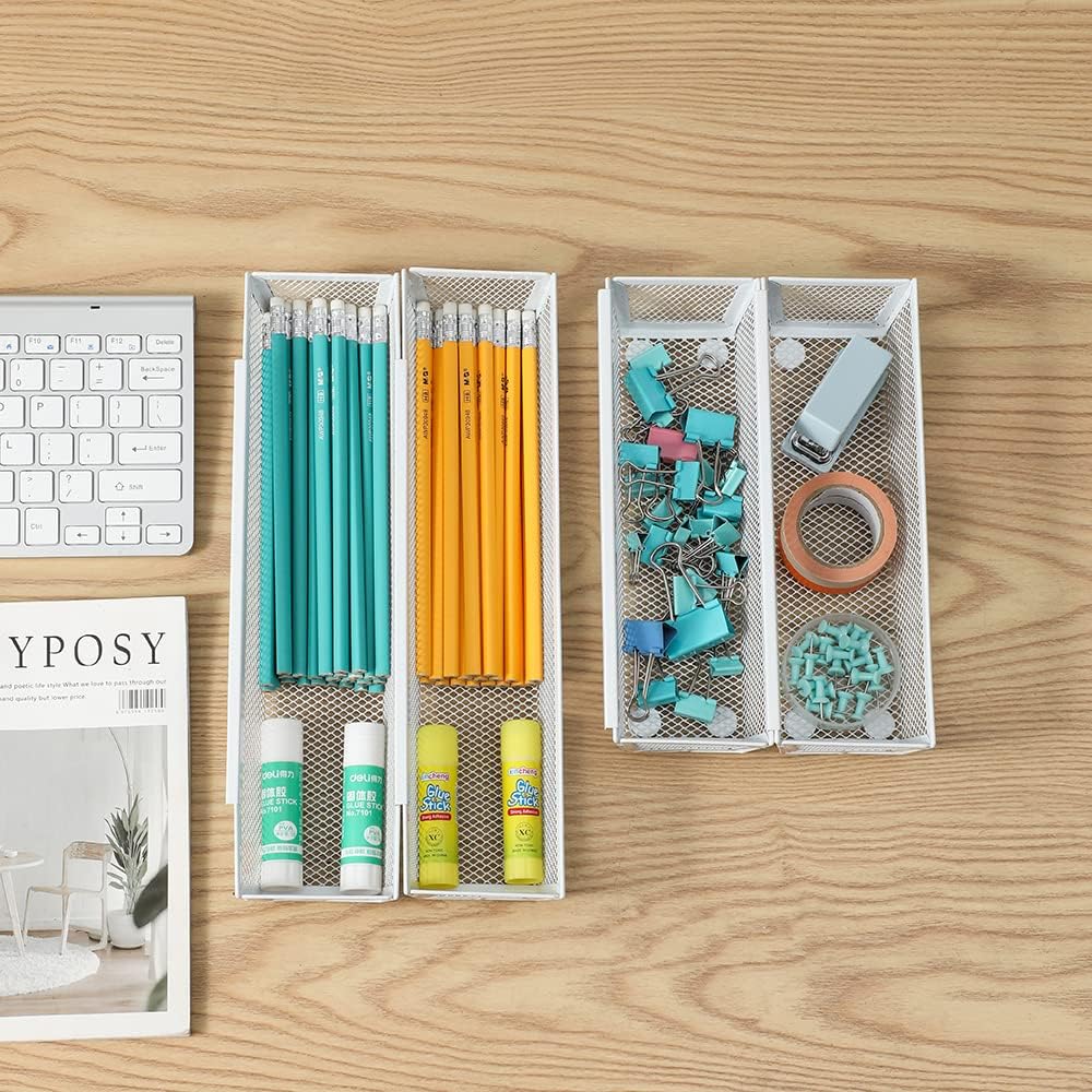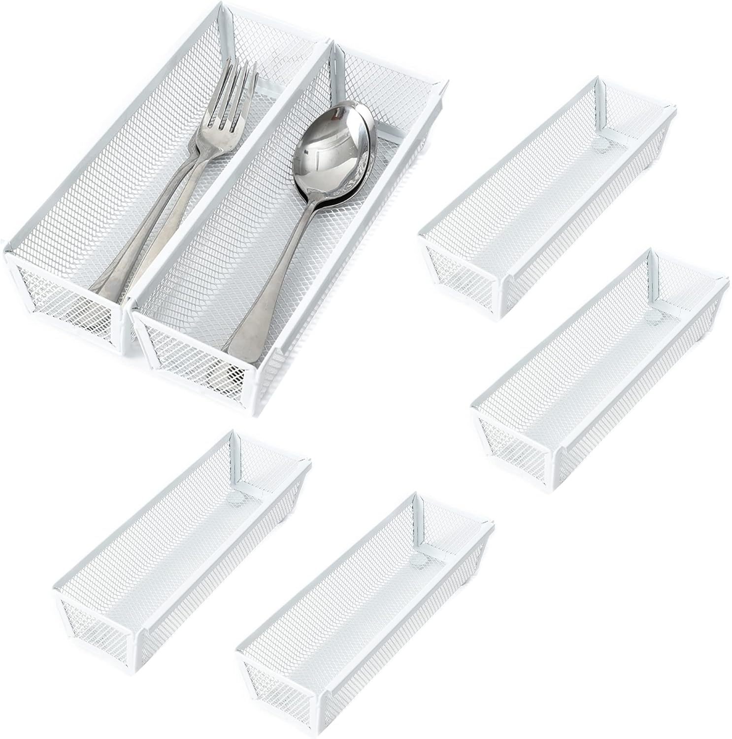 Mesh Tray Kitchen Drawer Utensil Cutlery Tray Office Supplies with Inter-locking Arm Drawer Dividers Organizer for Silverware, Flatware, Home,Office, School,Bedroom(9"X3"6pack) White