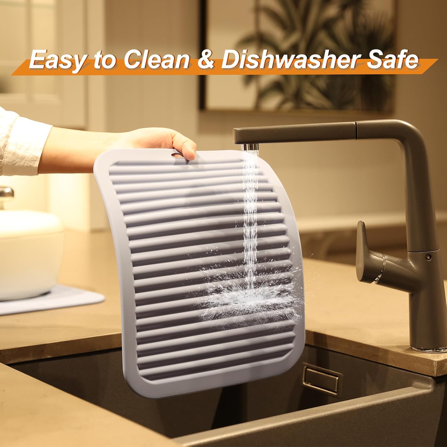 - EASY TO CLEAN & DISHWASHER SAFE - These trivets for quartz countertops are waterproof, plus stain and odor resistant. These kitchen hot pads are safe to pop in the dishwasher. It is non-stick and easy to clean. Roll up or hang on hook, save space. Experience a more convenient kitchen environment with these silicone trivet.