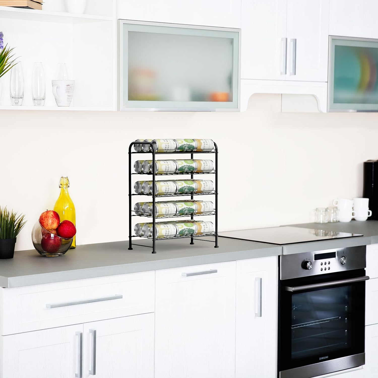 - Versatile Stand: The metal water bottle storage rack is not only used to store bottled water, but also can be used to store beverage soda cans, food cans, spice jars and water bottles, etc. Keep your water bottles organized on countertops, cabinets and pantry.