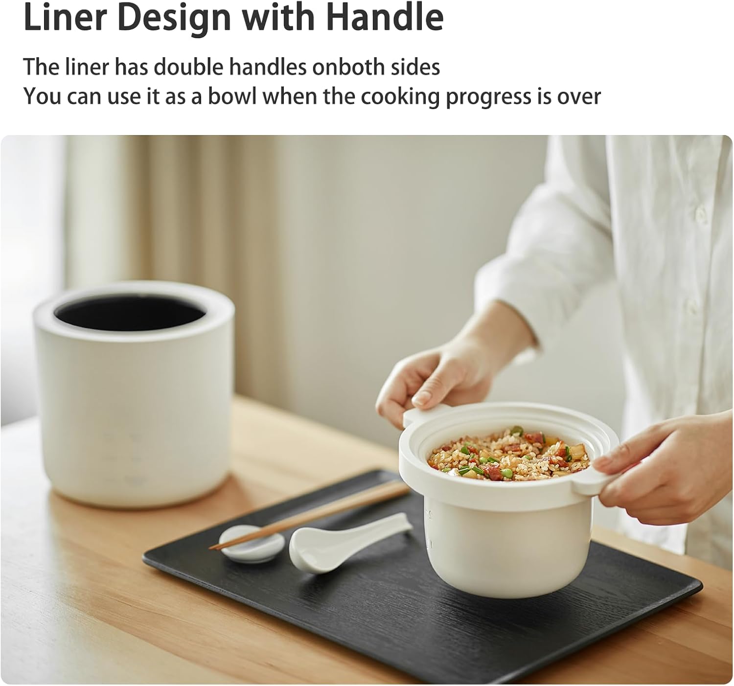- PACKAGING INCLUDES: This mini rice cooker is packaged with a ceramic non-stick coating rice cooker, a 160ml large rice measuring cup, a rice spoon, a detachable power cord, and an instruction manual.