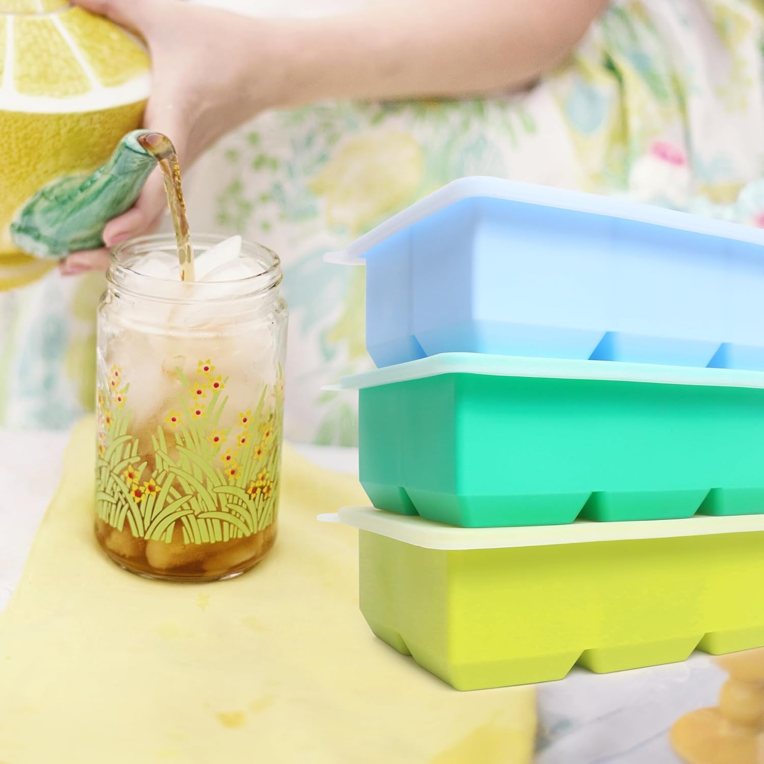 Silicone Ice Cube Trays 3 Pack - Large Size Silicone Ice Cube Molds with Leak Proof Removable Lid Square Ice Cube Tray And BPA Free for Cocktail,Whiskey, Stackable Flexible Ice