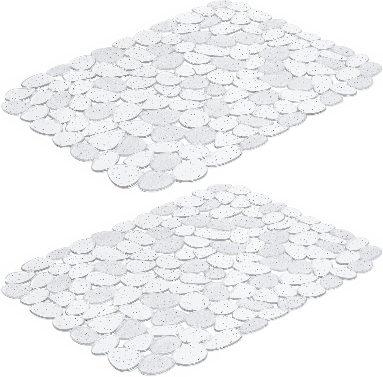 Bligli Pebble Sink Mat for Stainless Steel/Ceramic Sinks, PVC Eco-Friendly Sink Protectors for Bottom of Kitchen Sink, Dishes and Glassware, Fast Draining, 15.7 x 11.8 inch (2 Pack, Bling Clear)