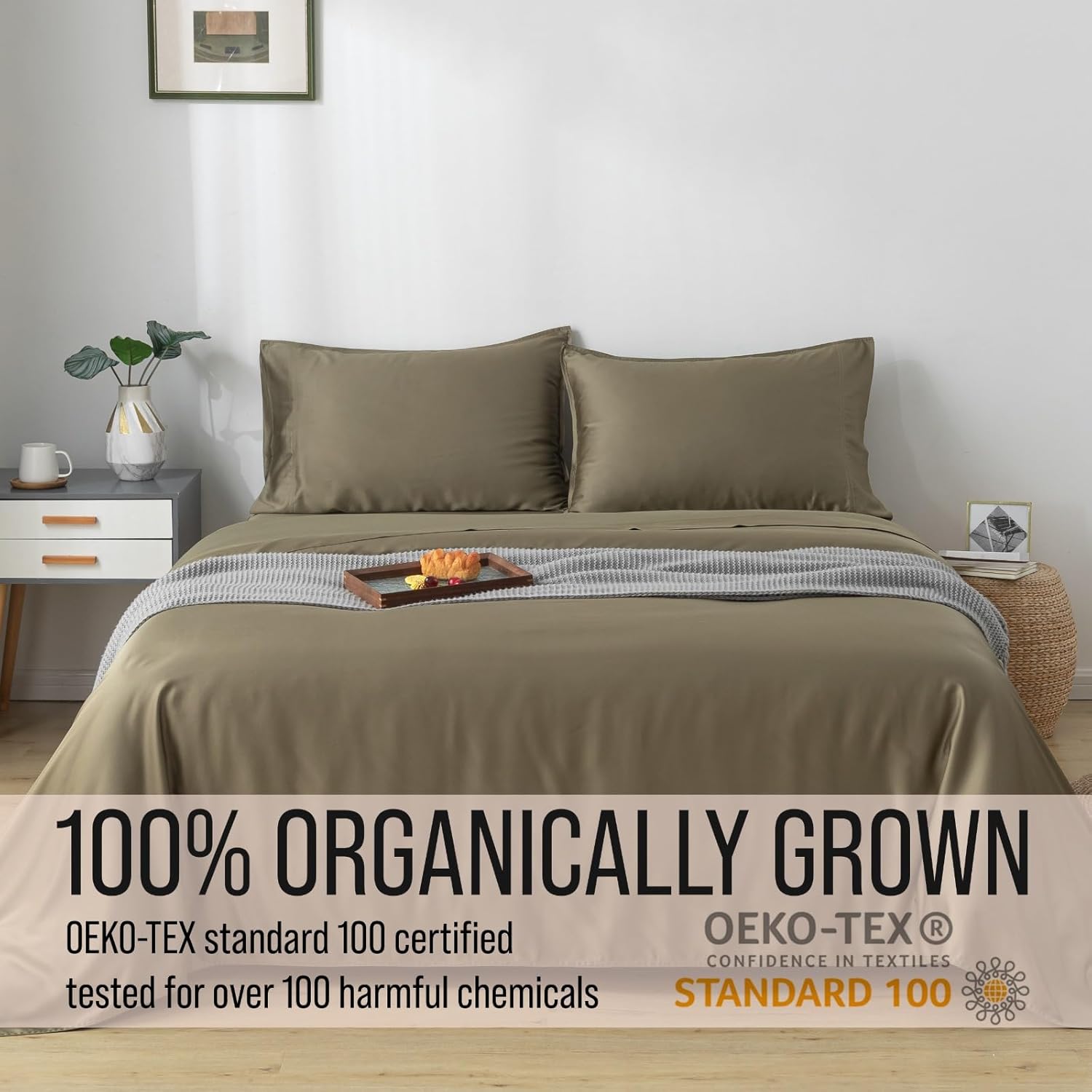 Bella Coterie Luxury Bamboo Viscose Split King Size Sheet Set | 100% Organically Grown | Ultra Soft | Cooling for Hot Sleepers | 18" Deep Pocket [Olive]