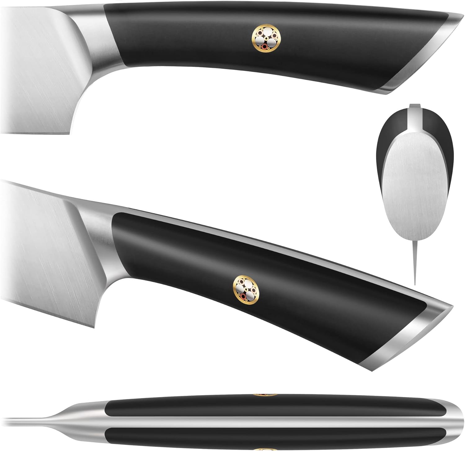 - Handcrafted full-tang knives forged from tight-grained X50CrMoV15 German Steel for incredible durability, stain resistance, and exceptional edge retention.
