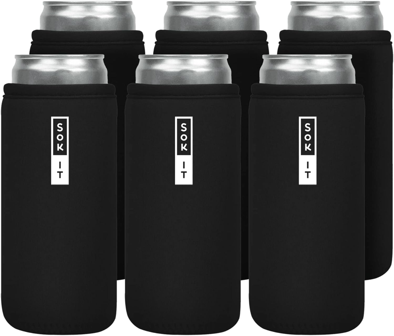 Sok It CanSok 6 Pack Sleeve for Beer & Soda Insulated Neoprene Cover (Black, 12oz Slim Can Sleeve - 6 Pack)