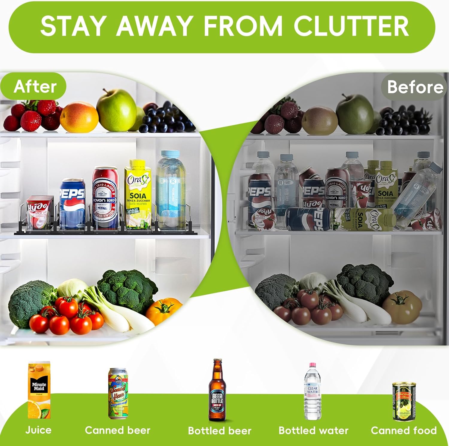 - 【Automatic Drink Propeller】The refrigerator drink organizer pusher can keep the beverage cans always in the front position, saves your space and ensures orderly storage and easy access to your drinks