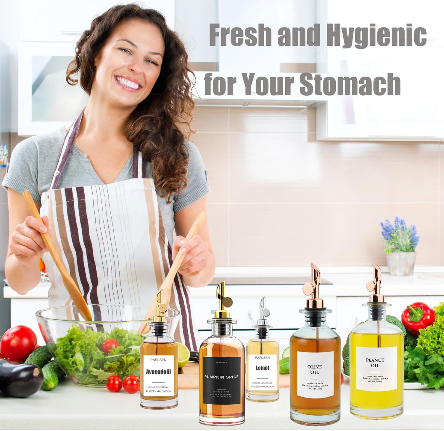 - Keep Oils and Liquor Fresh: High-quality metals oil dispenser keep oils fresher for longer than ever before. automatic oil spout suitable for most classic glass bottle necks, such as wine bottles, whiskey bottles, olive oil bottles,syrup bottles and other sealing bottle. gold pour spouts for liquor bottles are the most popular essential tools in home, kitchen, restaurants, bar accessories.