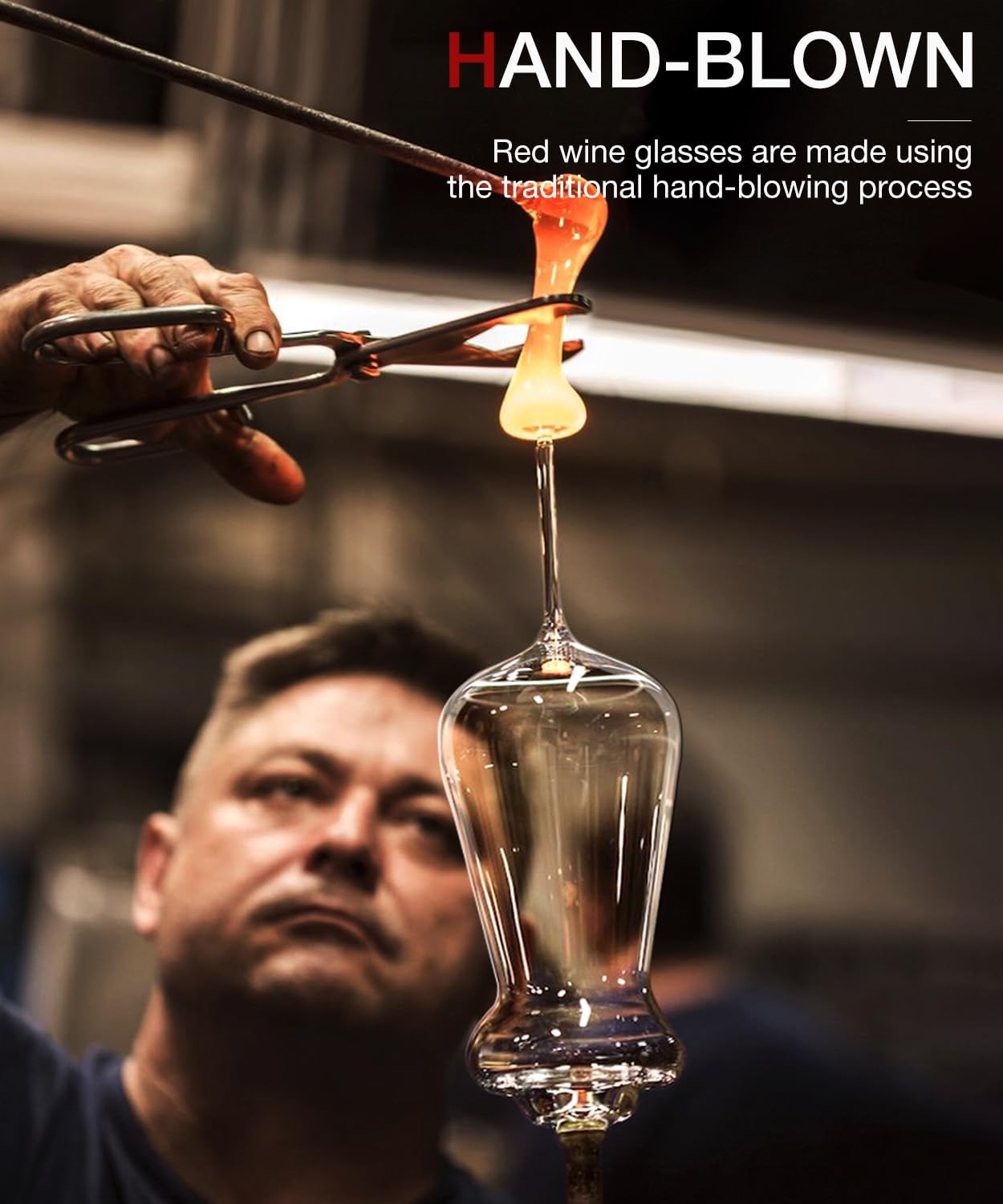 - HAND BLOWN: Red wine glasses are made using the traditional hand-blowing process, master craftsmen pay meticulous attention to detail. their years of experience to create red wine glasses that are not only beautiful but also functional