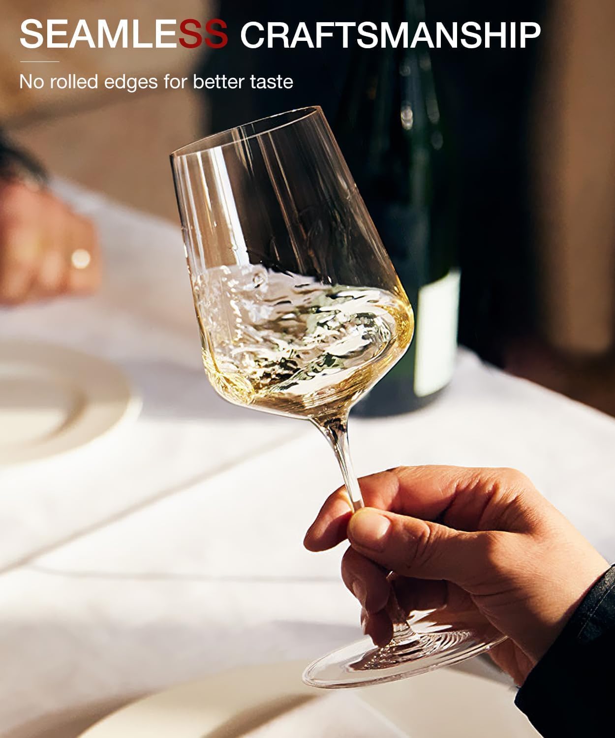 - SEAMLESS CRAFTSMANSHIP: Wine glasses are crafted using a seamless process, with no rolled edges that can interfere with the taste of your wine. you'll be able to fully appreciate the complex flavors and aromas of your favorite reds