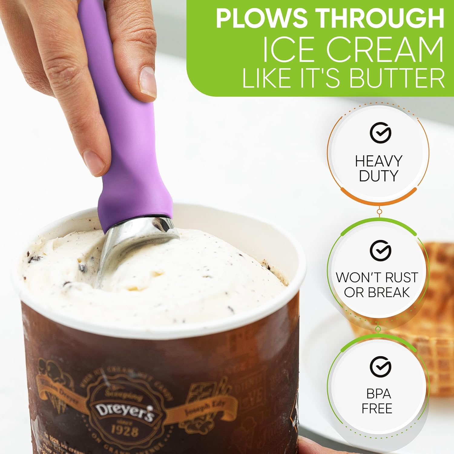 Spring Chef Metal Ice Cream Scoop with Comfortable Handle, Heavy Duty Sturdy Ice Cream Scooper Spoon for Cookie Dough, Frozen Yogurt, Gelato, Sorbet, Sundae, Melon - Dishwasher Safe - Orchid