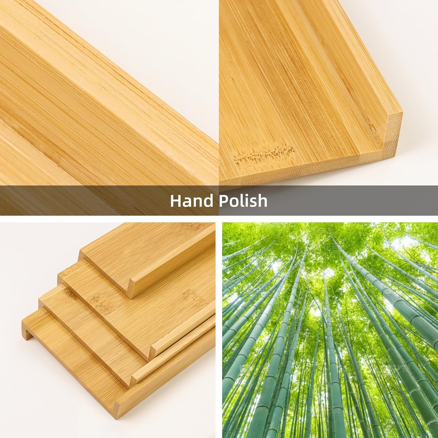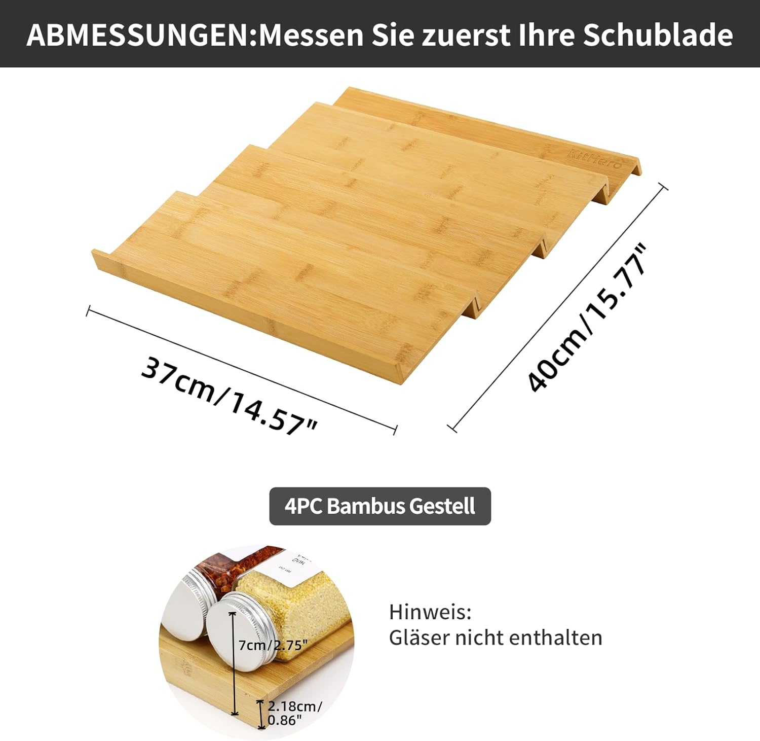 Spice Drawer Organzier,4 Tiers Bamboo Spice Rack Tray Insert for Cabinet Drawer Countertop, Kitchen Seasoning Storage Drawer Organization,14.57" Wide x 15.8" Deep (Hold UP To 32 Jars