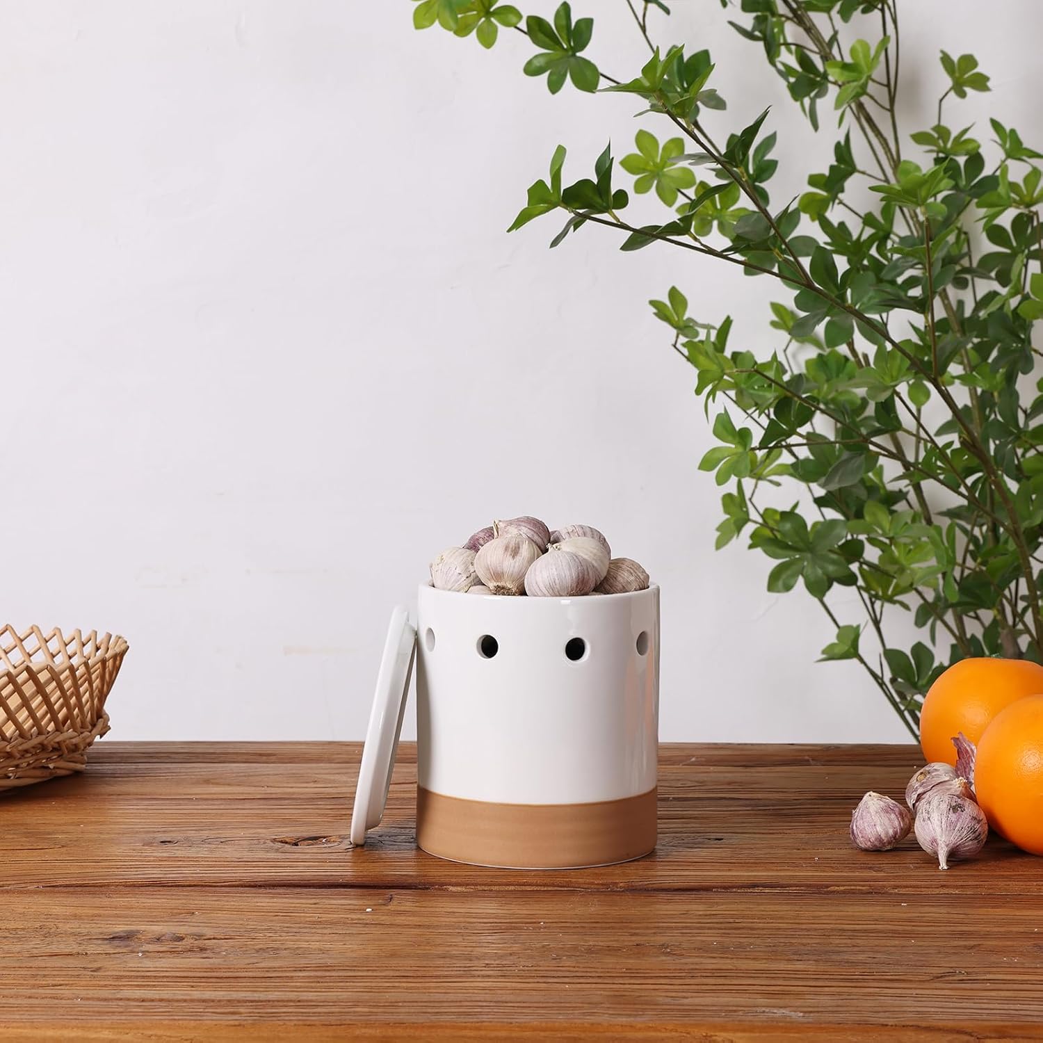 LEETOYI Garlic Keeper with Lid, Garlic Holder Storage Container, Ceramic Garlic Container for Countertop, Garlic Saver to Keep Your Garlic Cloves Fresh Longer, Easy to Clean