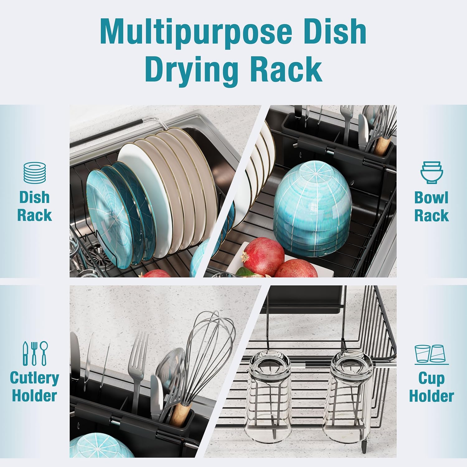 - Used for Three Scenarios: This dish drying rack expands for use on the countertop, in-sink or over-sink