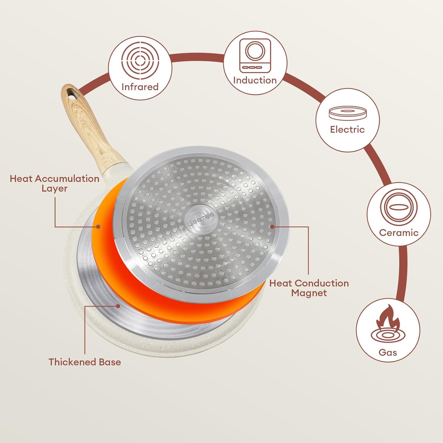 JEETEE Crepe Pan Nonstick, 9.5 inch Comales Para Tortillas Griddle Pan for Stove Top, Granite Coating Flat Pancake Pan Dosa Tawa, PFOA FREE and Induction Compatible (Beige)