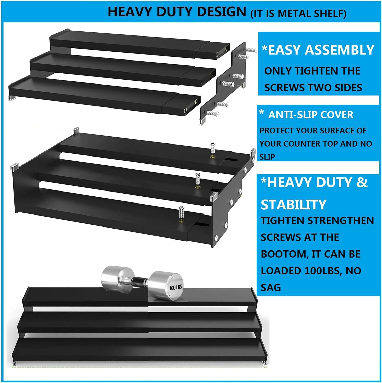 Expandable Spice Rack Storge organizer with 3-Tier step shelf for cabinet,seasoning racks organizion.Great for Kitchen countertop shelves,Pantry and more(2packs/Black)