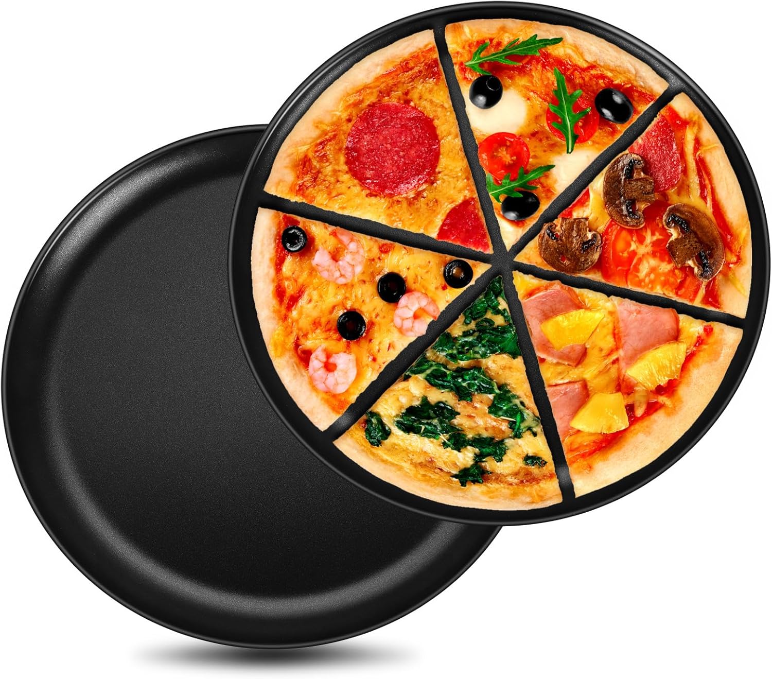 E-far 10 Inch Pizza Pan Set of 2, Nonstick Pizza Pie Pan Tray Platter, Metal Round Baking Sheet Cooking Pan for Oven, Durable & Stainless Steel Core