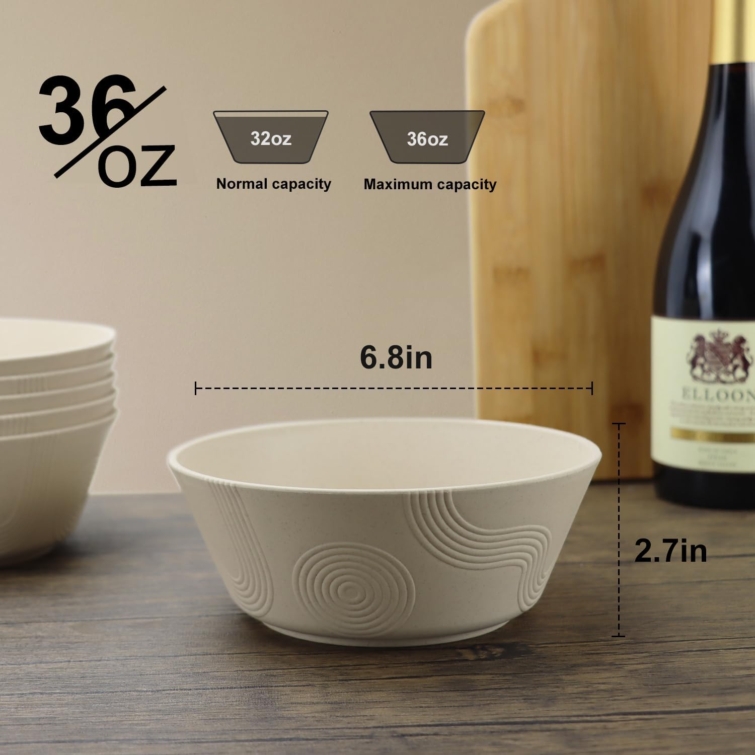 Wheat Straw Bowl Sets with Textured Pattern,6 PCS Unbreakable Cereal Bowl 36 OZ,Microwave and Dishwasher Safe Bowls,Soup Bowl Sets BPA Free for Salad (Beige
