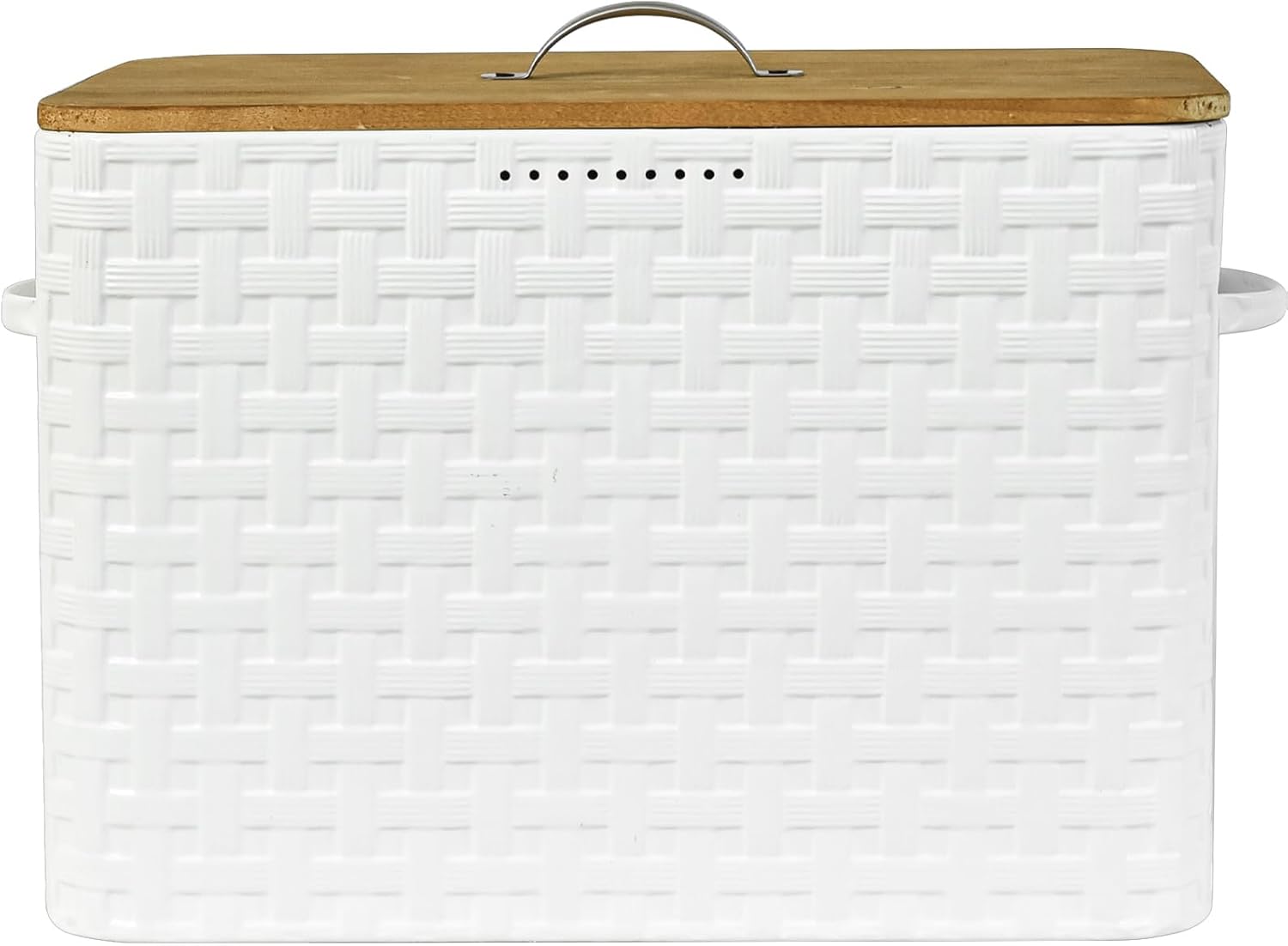 Extra Large Space Saving Farmhouse Bread Box With Wood Lid - Vertical Breadbox Bread Storage Bin Holder for Kitchen Countertop, White