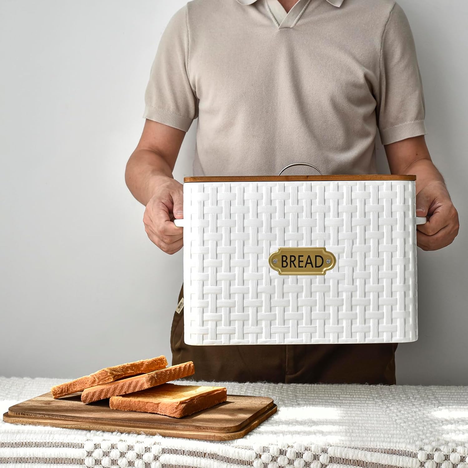 - With its charming farmhouse design and rustic wooden lid, our bread box adds a touch of country styling to your kitchen decor. It's not just a bread holder; it's a statement piece that elevates the aesthetic of your space. These bread holders can also be utilized in commercial spaces - from offices to lounges, restaurants, delis, bakeries, and coffee shops.