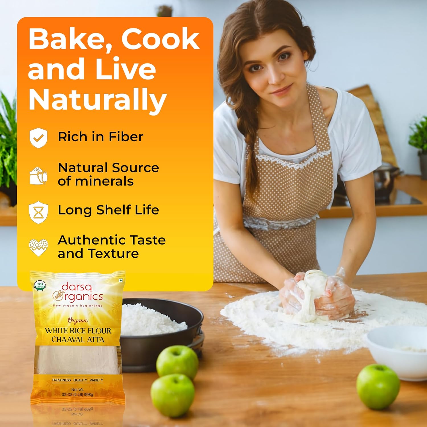 - USDA CERTIFIED ORGANIC & PURE QUALITY: Darsa Organics white rice flour organic is sourced from the fertile fields of North India. USDA certified and free from synthetic pesticides, each batch guarantees pure, fresh flour crafted for a healthy lifestyle.