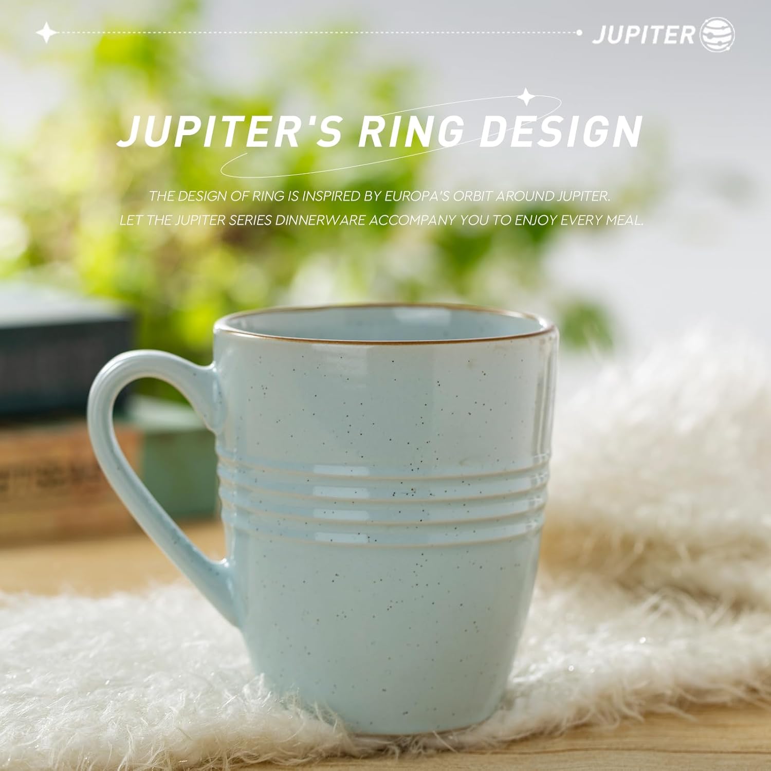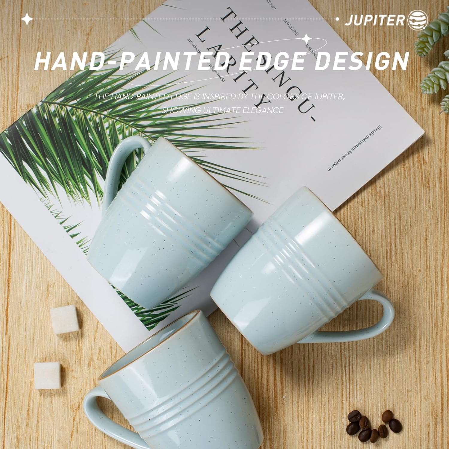 famiware Jupiter Coffee Mugs Set of 4, 14 OZ Coffee Mug, Microwave and Dishwasher Safe, Coffee Cups with Handle for Coffee, Tea, Cocoa, Milk, Light Blue