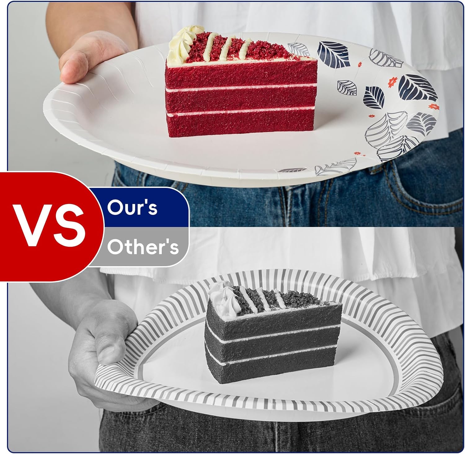 - Microwaveable & Premium Quality: Heavy duty Paper plates are microwaveable and freezer safe, they can be used for hot and cold food. Cut-resistant and soak-proof, making it perfect for your food without worrying about spills and messes. Notice: Do not heat dry foods such as bread