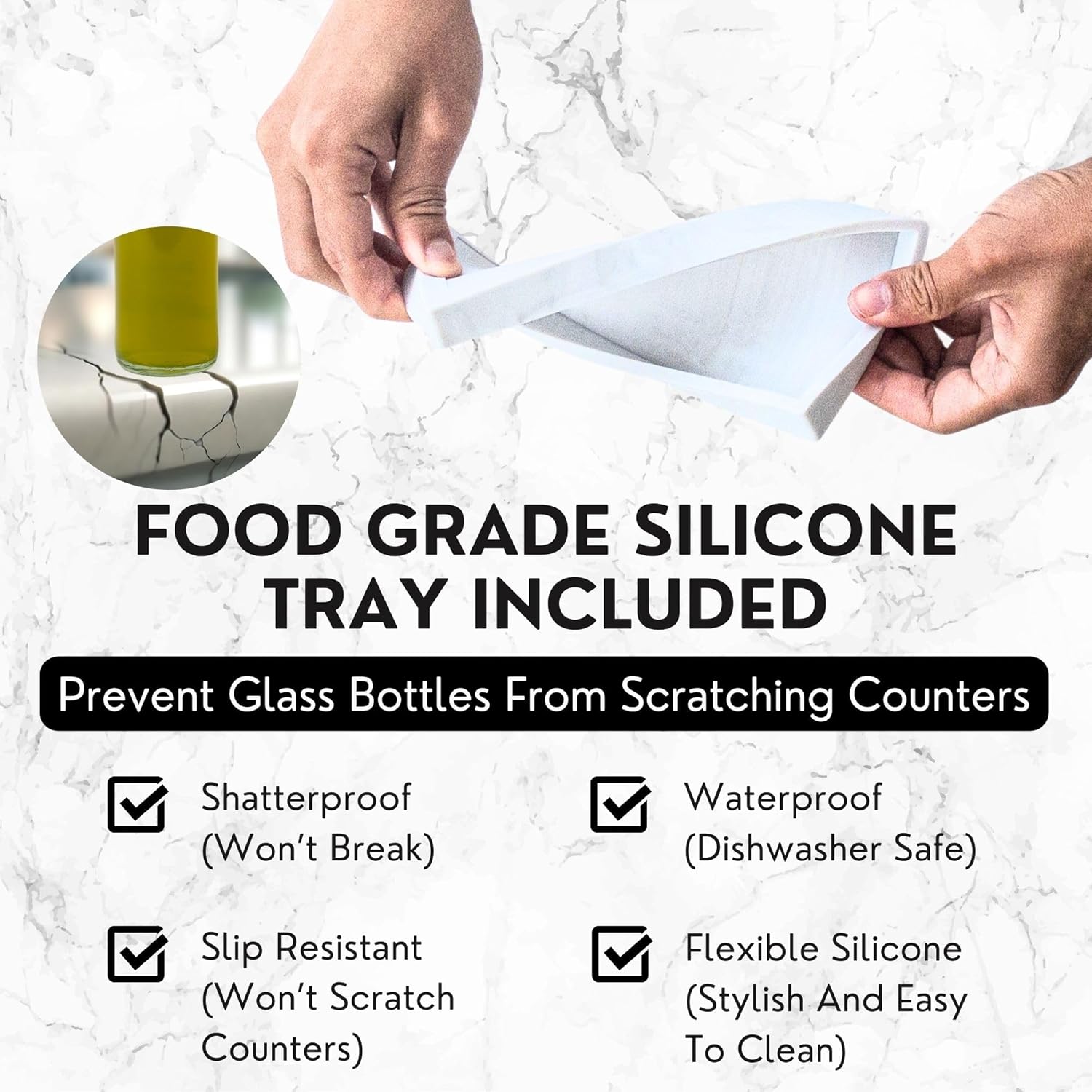 Olive Oil Dispenser Bottle For Kitchen With Silicone Tray & 40 Labels, Soy Sauce Dispenser, Coffee Syrup Dispenser, Olive Oil Bottles Set Of 2, Gold