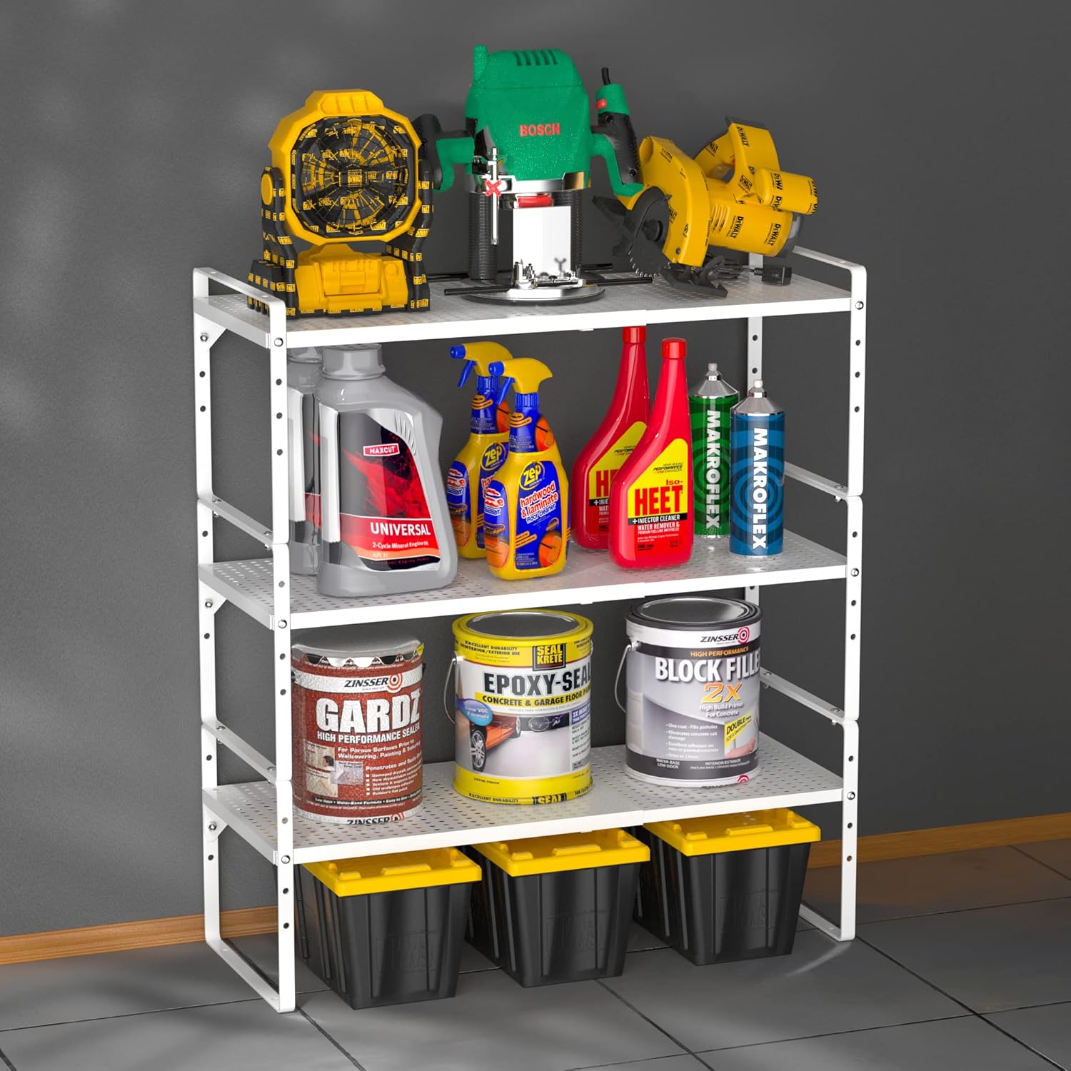 - ăHigh-quality materialsă--These shelves are made of metal steel, and the bottom is fixed and supported by screws to prevent inward collapse, and can hold up to 130 lbs of household items. The surface is smooth and spray-painted, it is easy to clean, will not rust or scratch delicate items, and can be used for a long time. The anti-skid pad on the bracket prevents slipping.