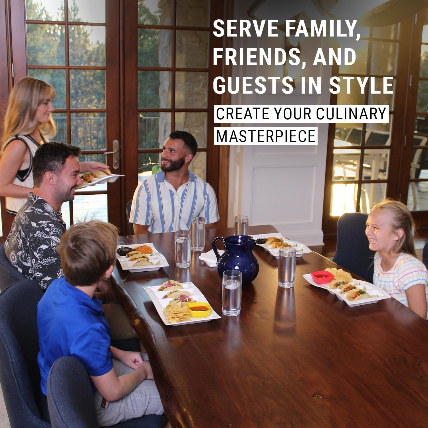 - Versatile Serving Dish: Our versatile white plate is perfect for serving tacos, sushi, veggies, desserts, and more; Elevate any meal presentation with this stylish china serving dish, whether for snacks, relishes, condiments, food prep, or even breakfast, lunch, dinner, or party use